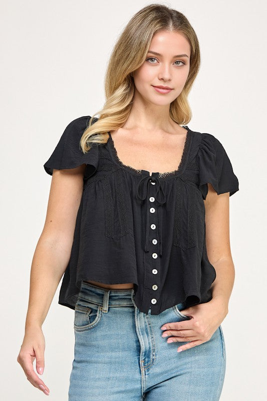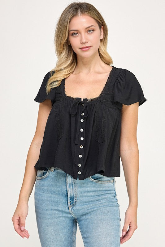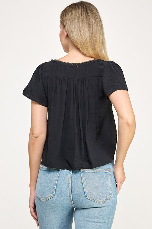 Lace Detail Short Slv Blouse