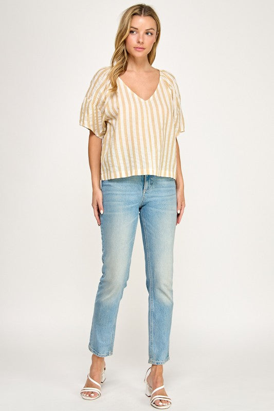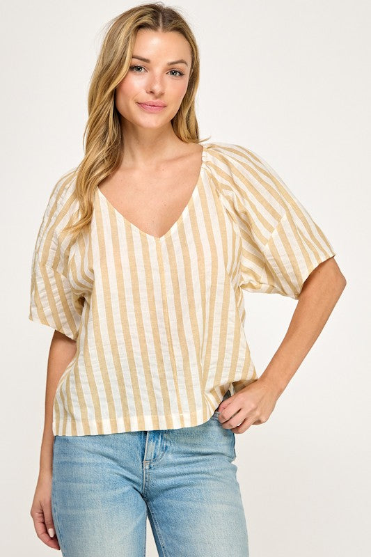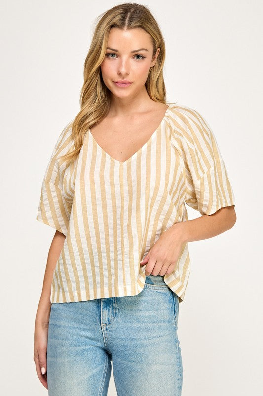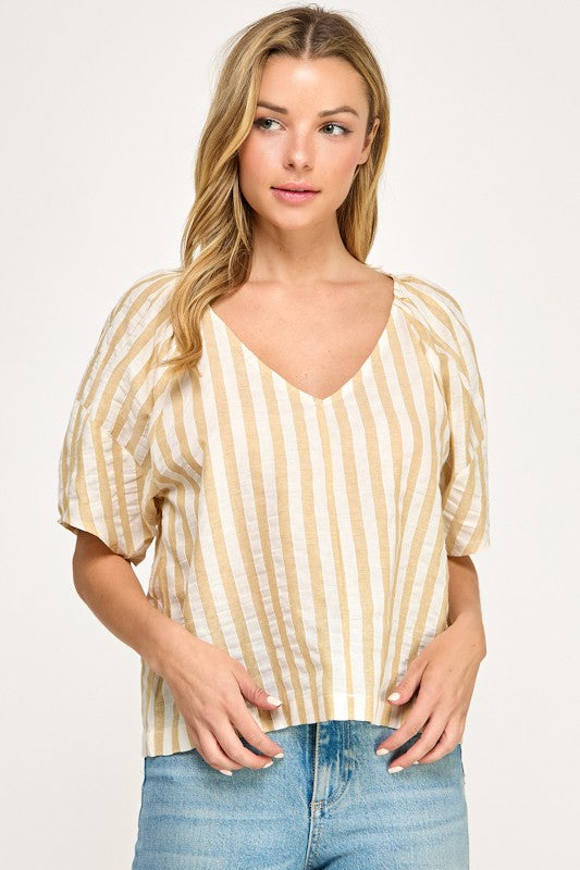 Striped V Neck Blouse