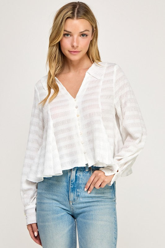 Texture Knit Flare Blouse