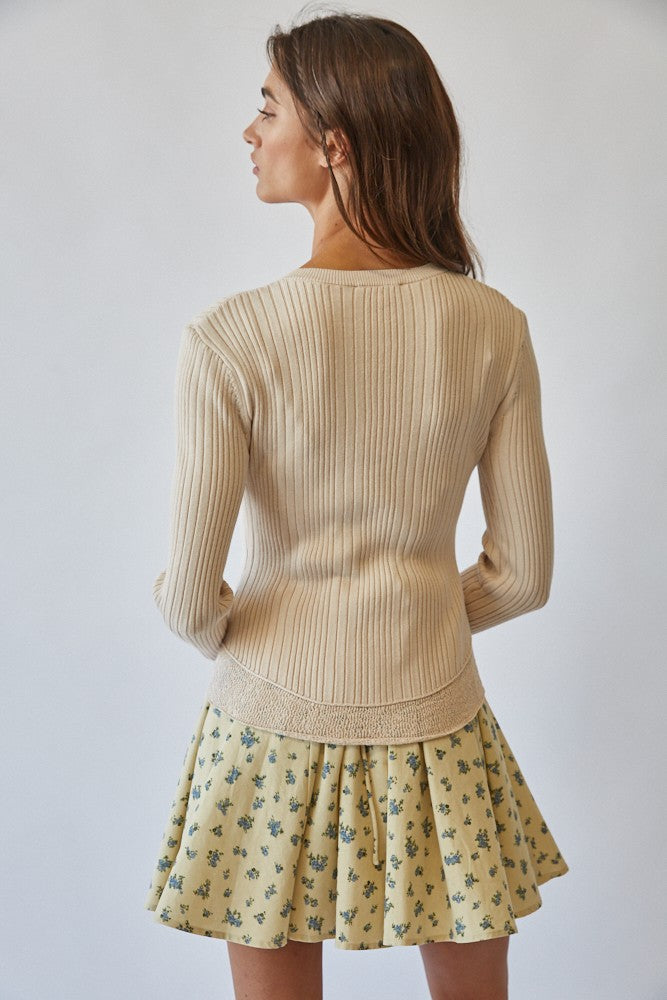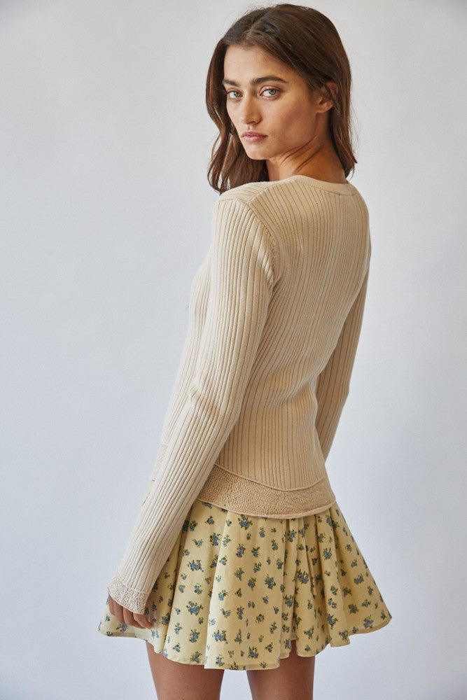 Lace Hem Rib Knit Cardigan
