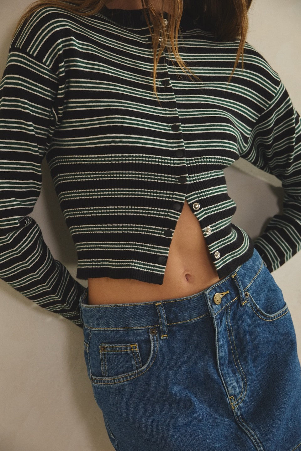 Striped Snap Button Down Cardigan