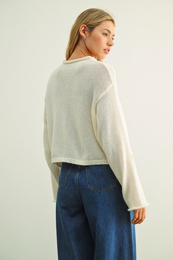 Round Rolled Hemline Detail Cardigan