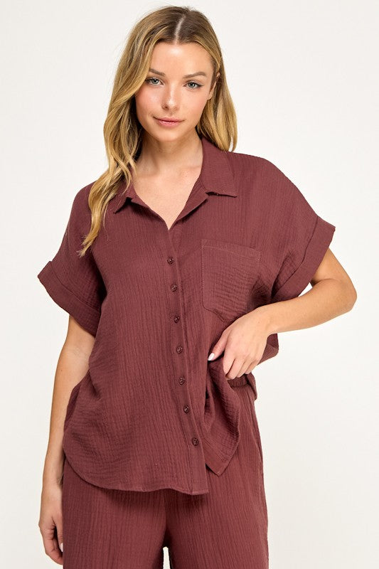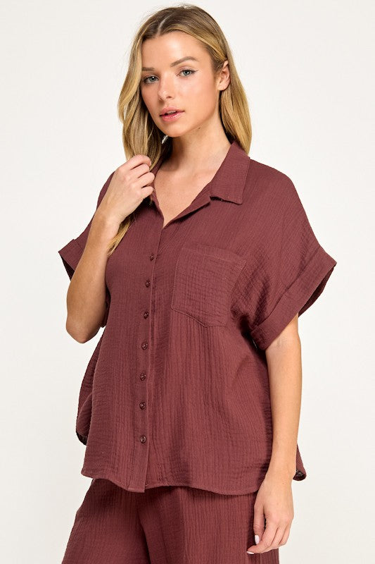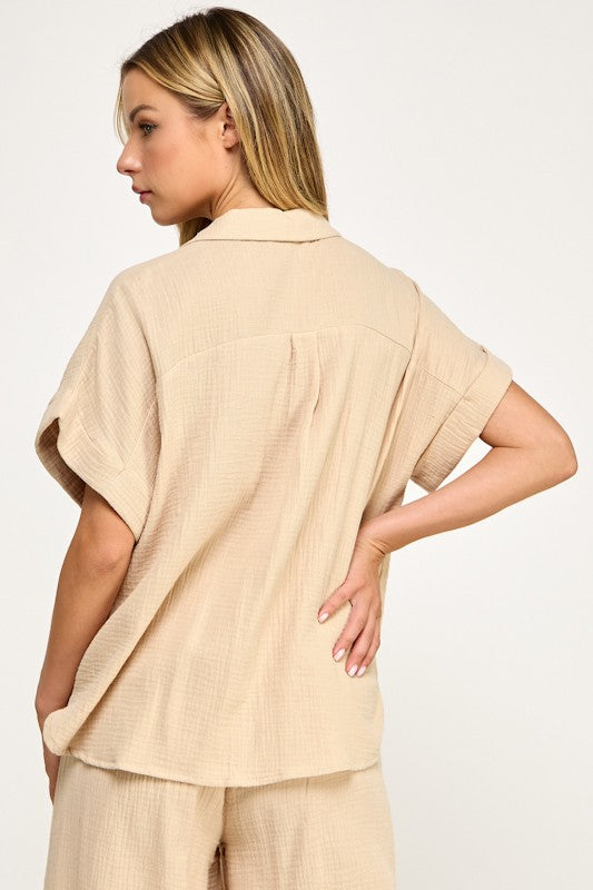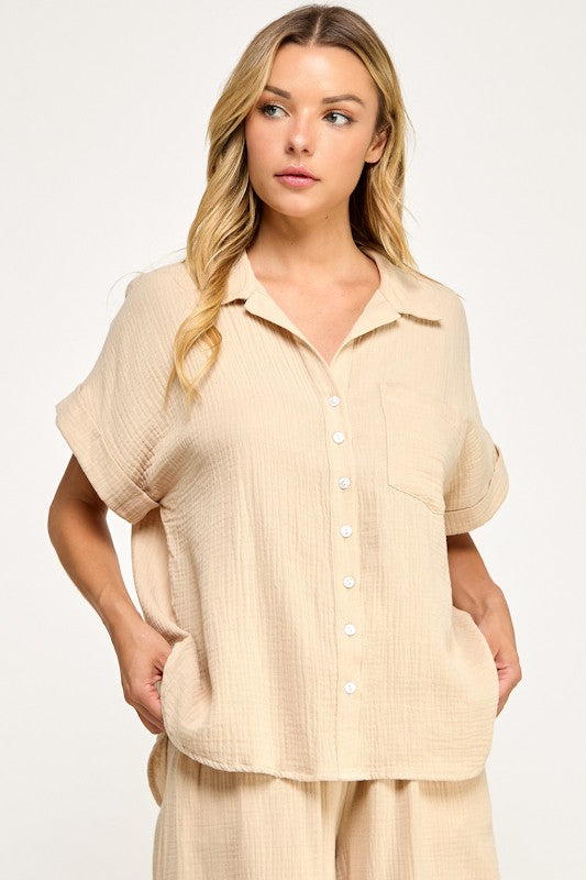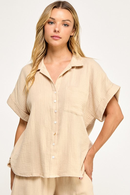 Double Gauze Half Slv Button Up Shirt