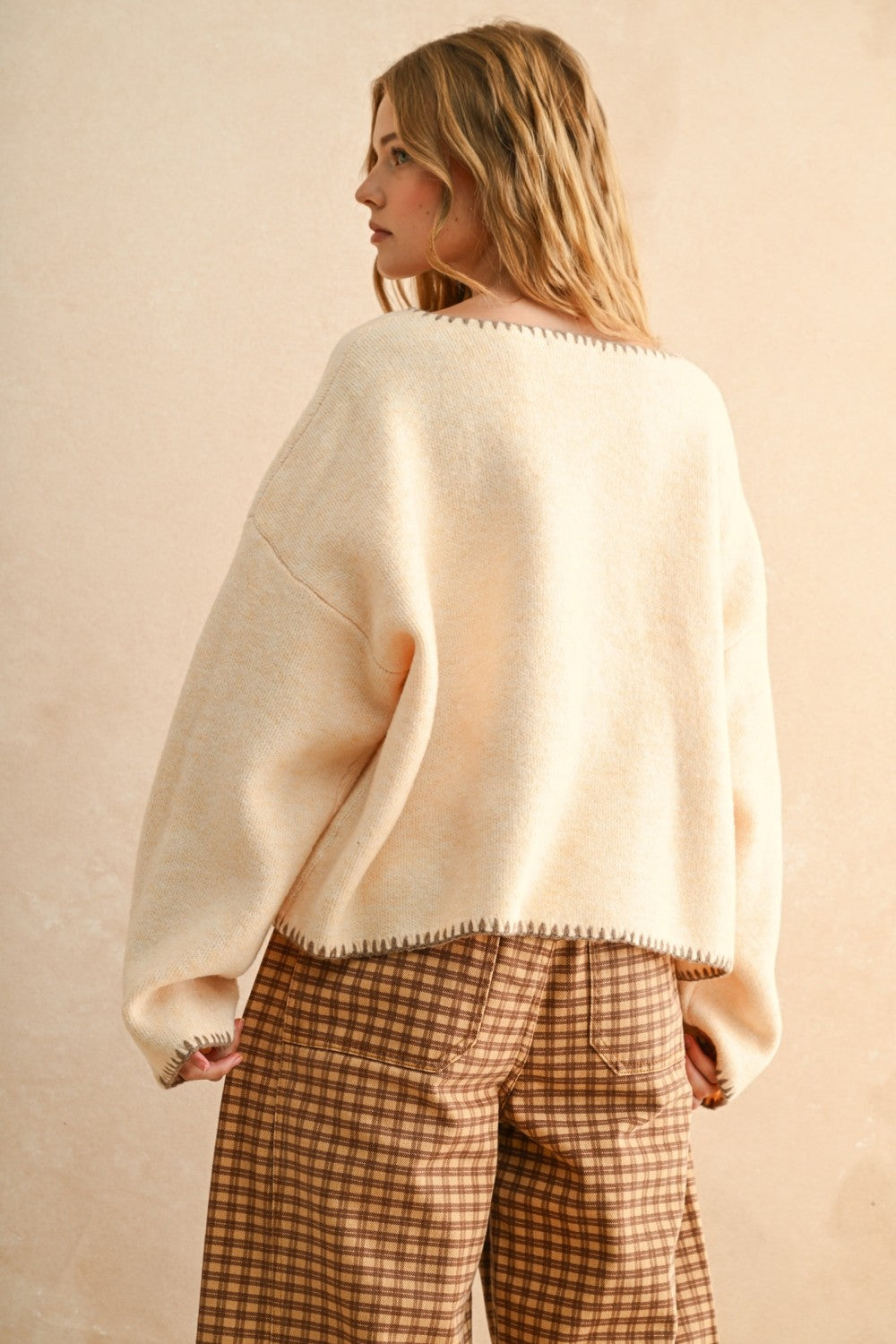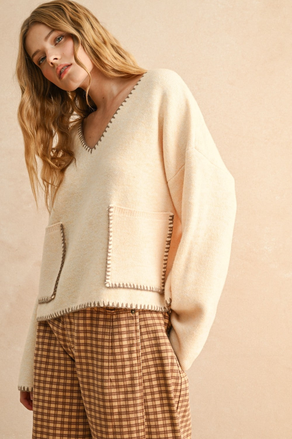 Stitch Detail V Neck Sweater Top