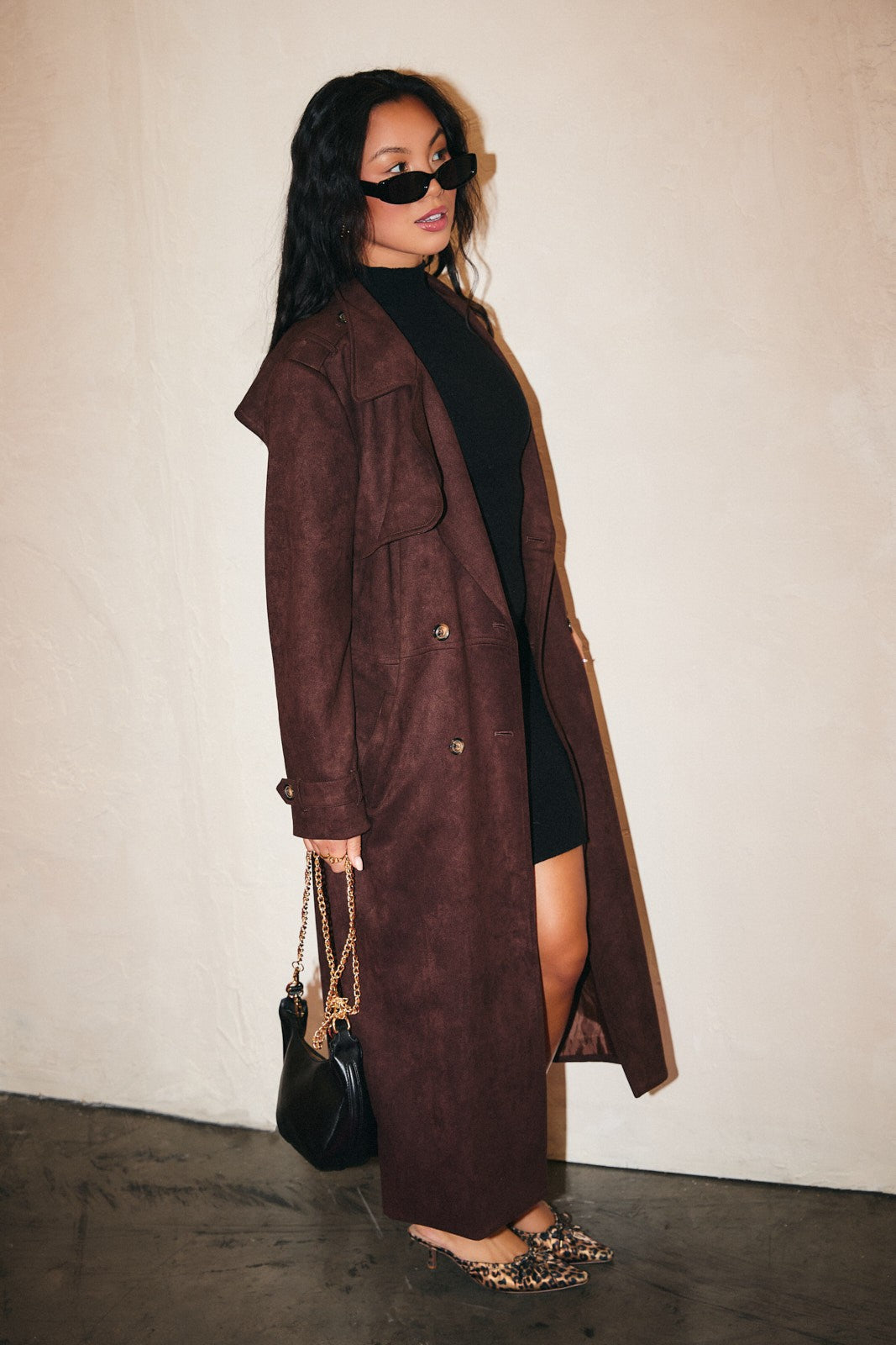 Suede Long Trench Coat