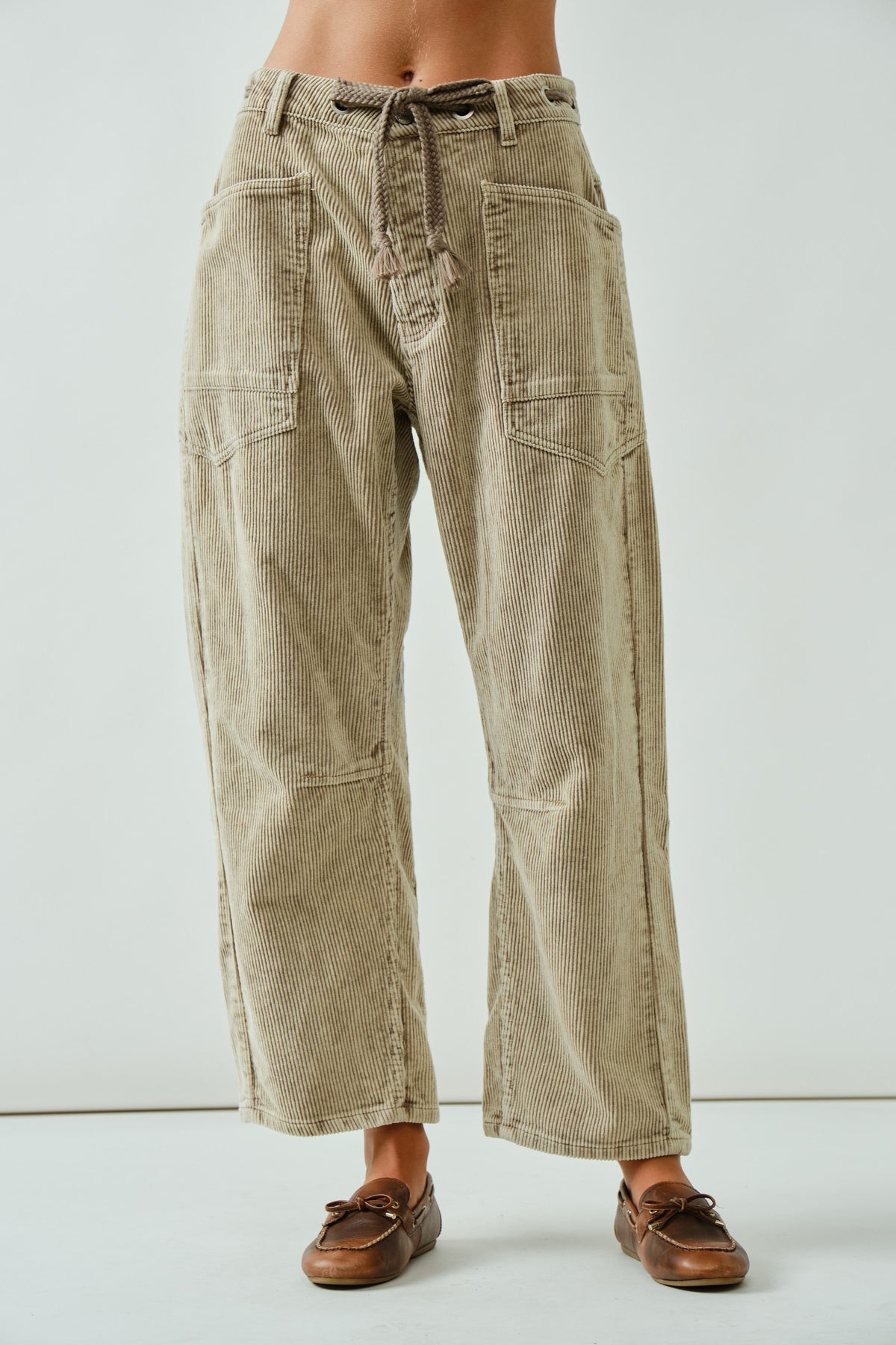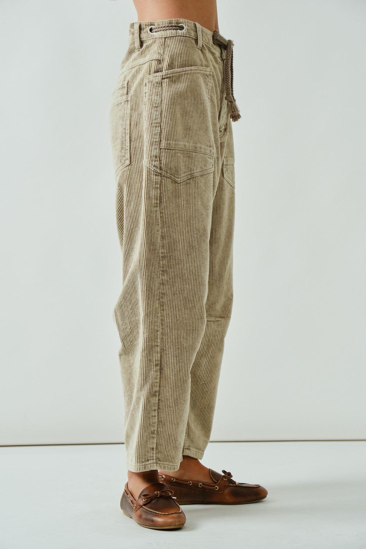 Barrel Corduroy Pants With Eyelet Waist