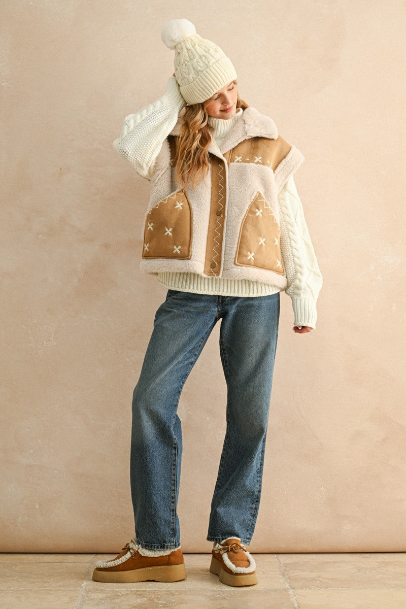 Suede & Sherpa Combo Oversized Vest