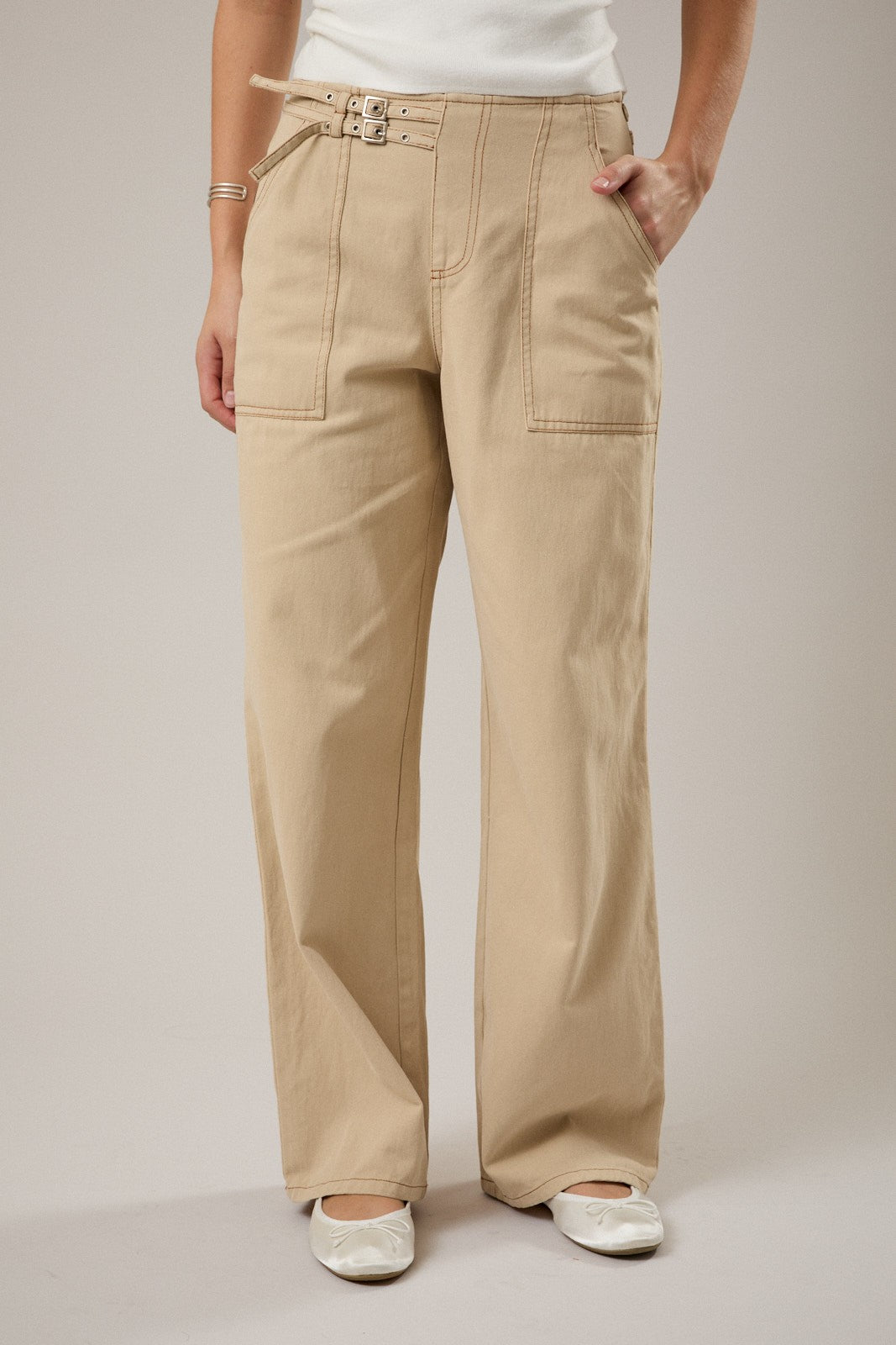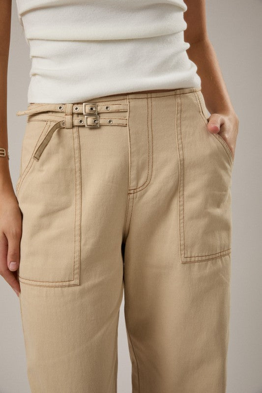 Mid-Rise Belt Detailed Pants