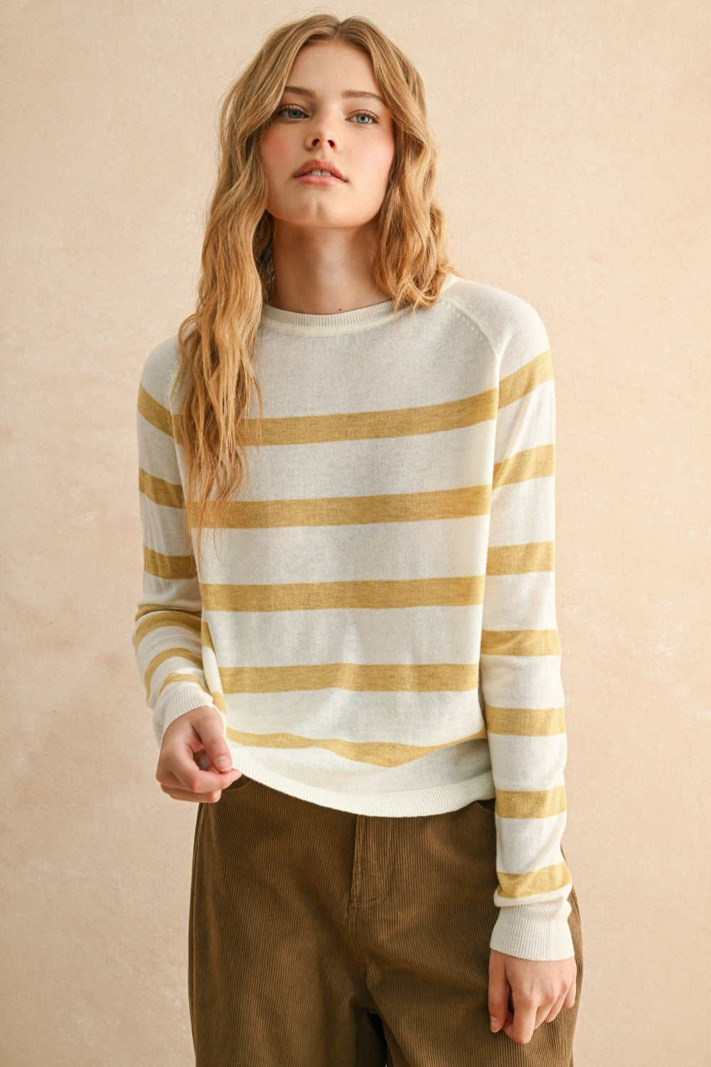Striped Round Neck Basic Sweater Top