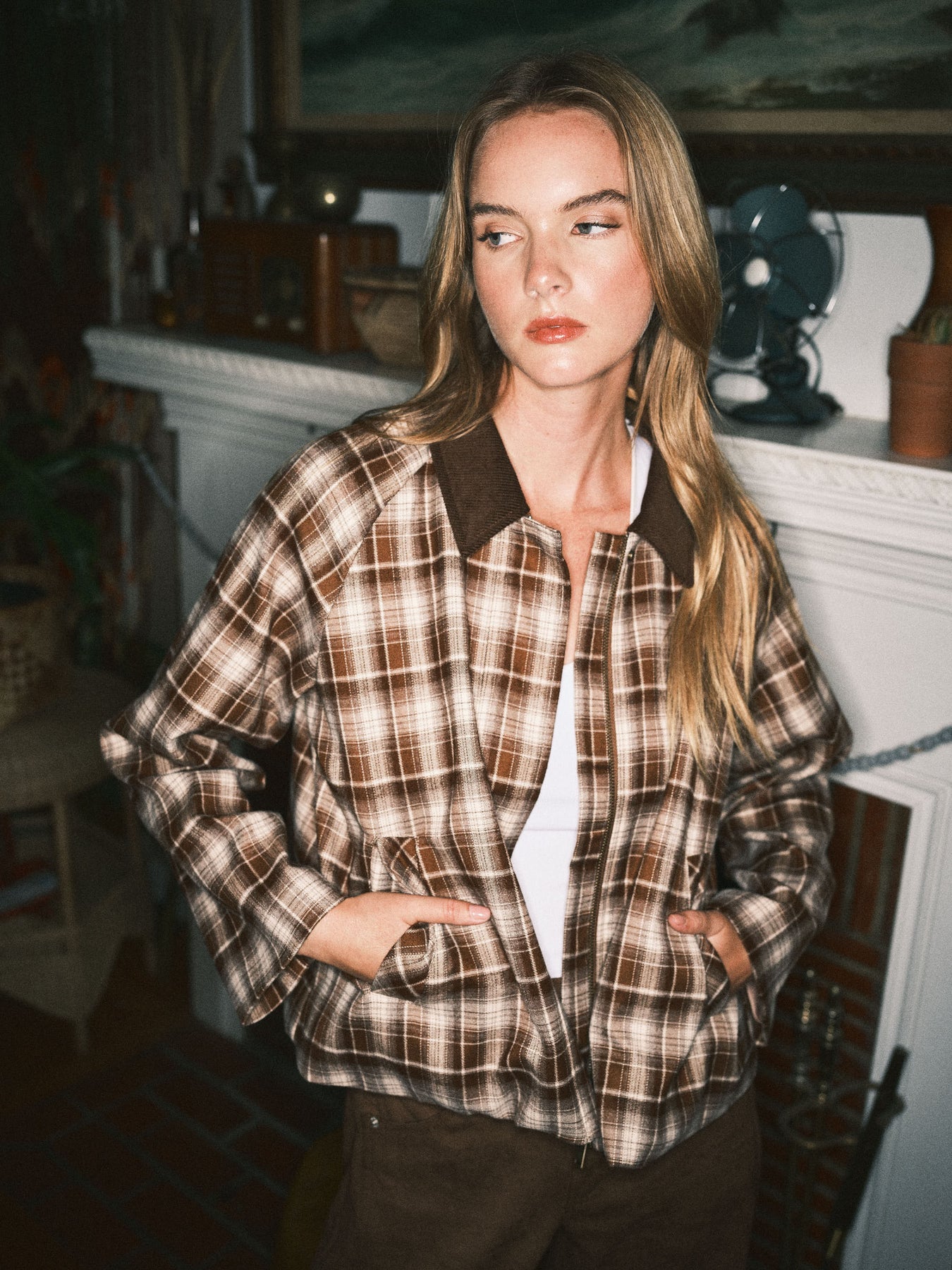 Plaid Comfy Jacket With Contrast Collar