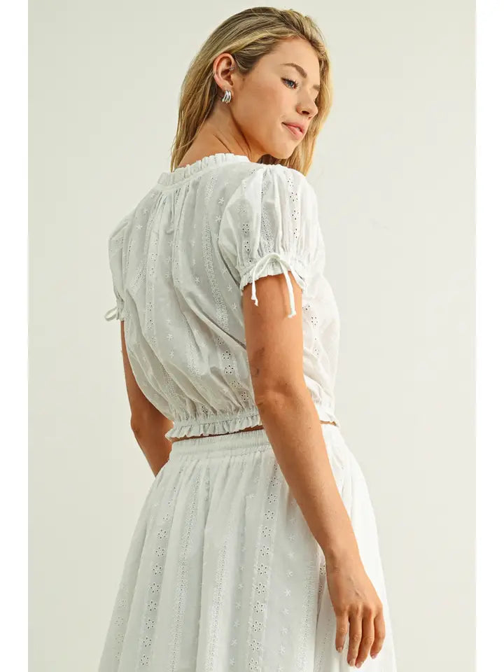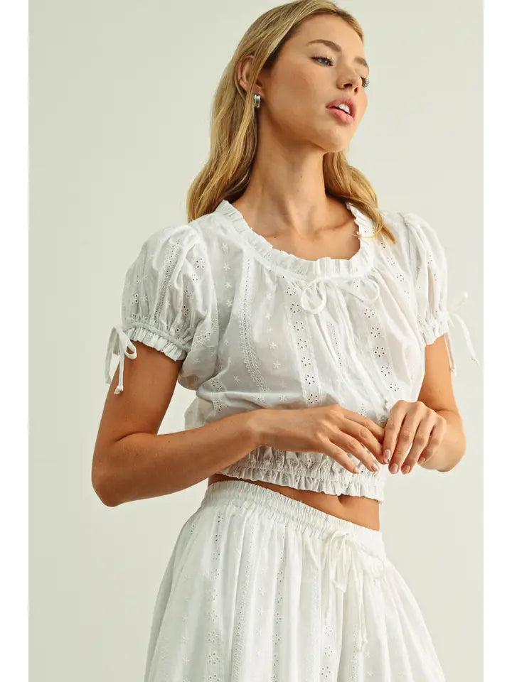 Lace Trim Smocked Detail Eyelet Top
