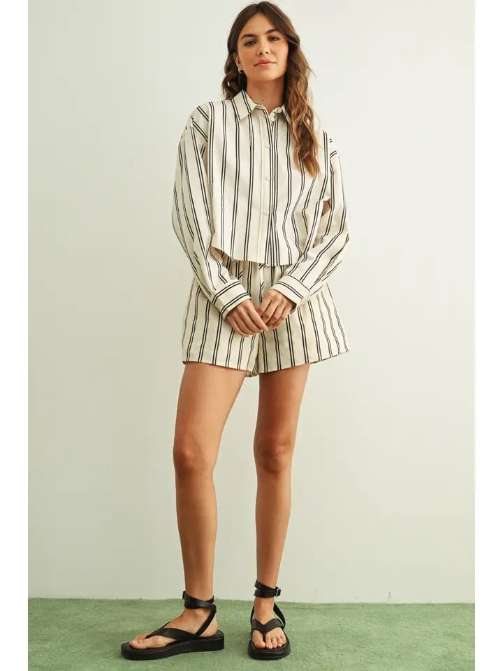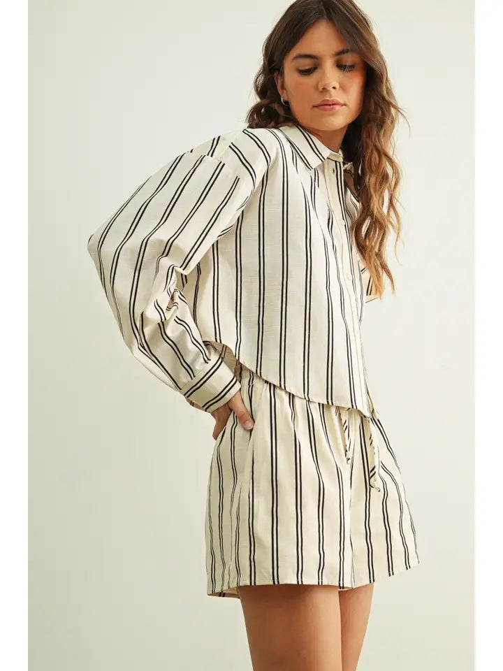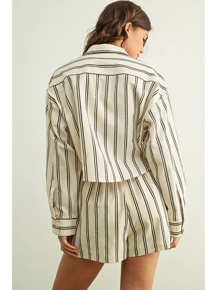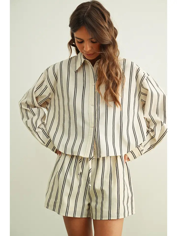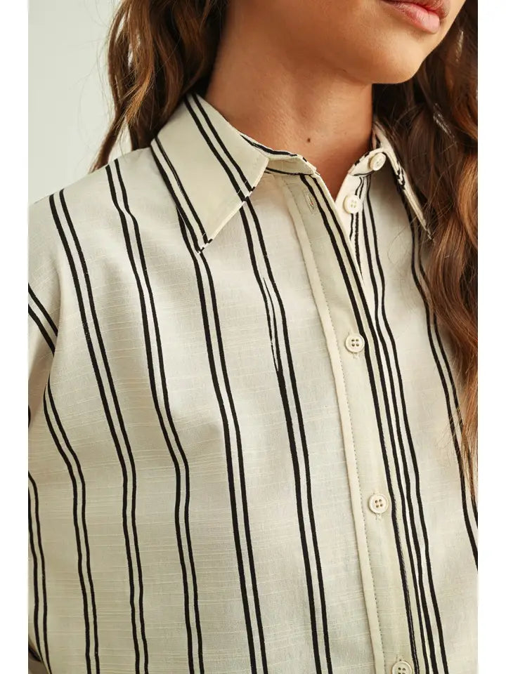 Striped Button Front Short Sleeve Shirts