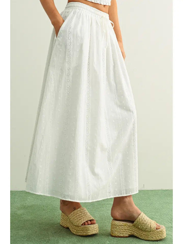 Embroidery Elastic Band Waist Full Skirt