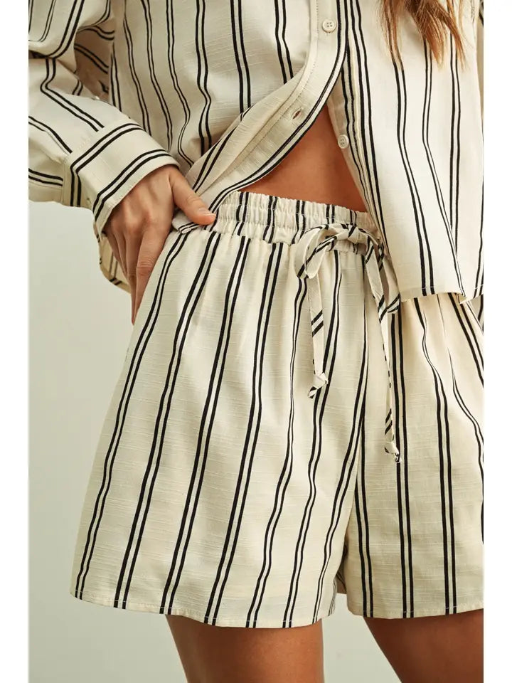 Striped Elastic Band Waist Shorts