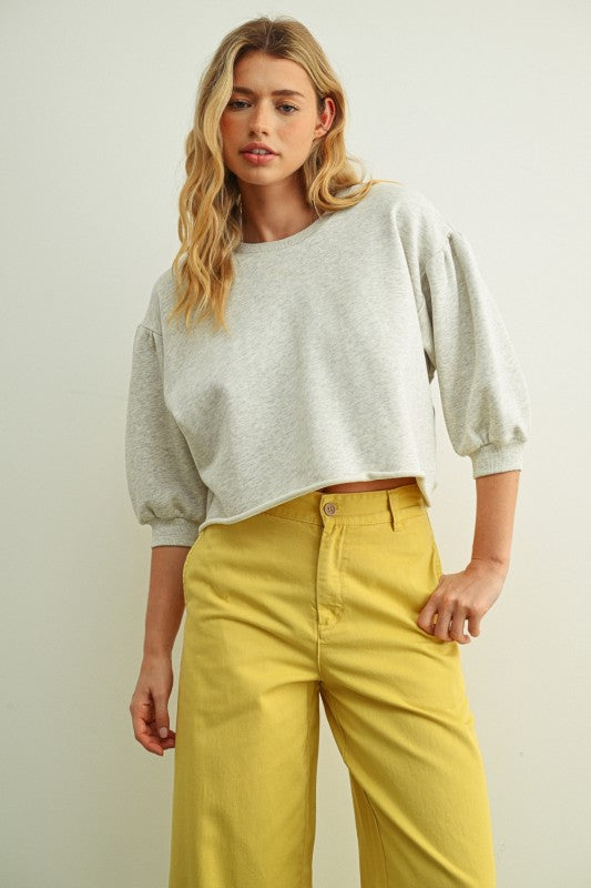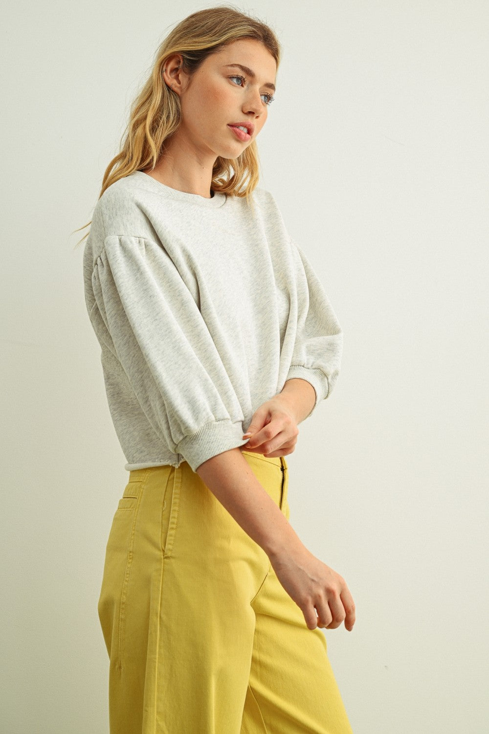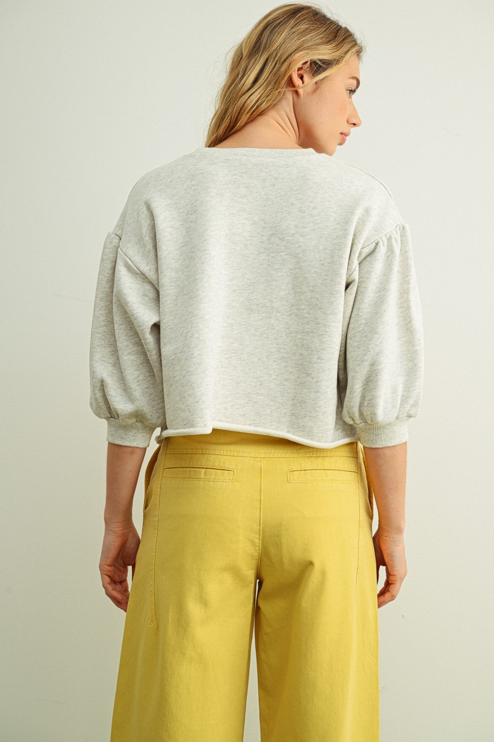 Raw Edge Bottom 3/4 Sleeve Sweatshirts