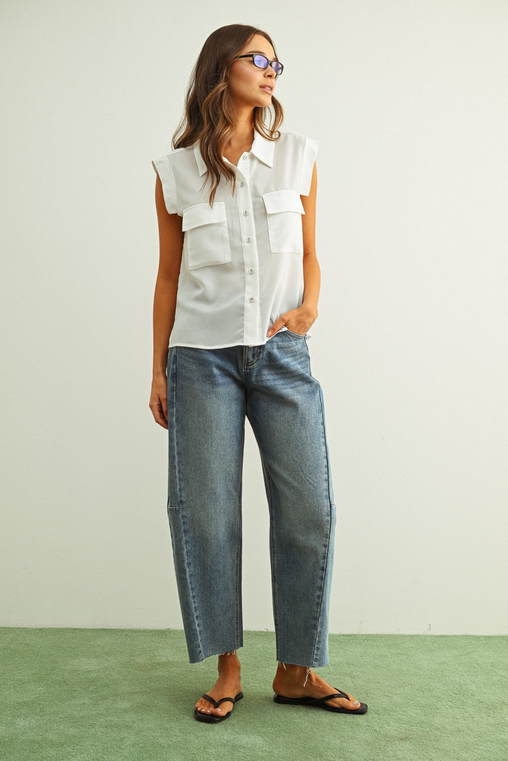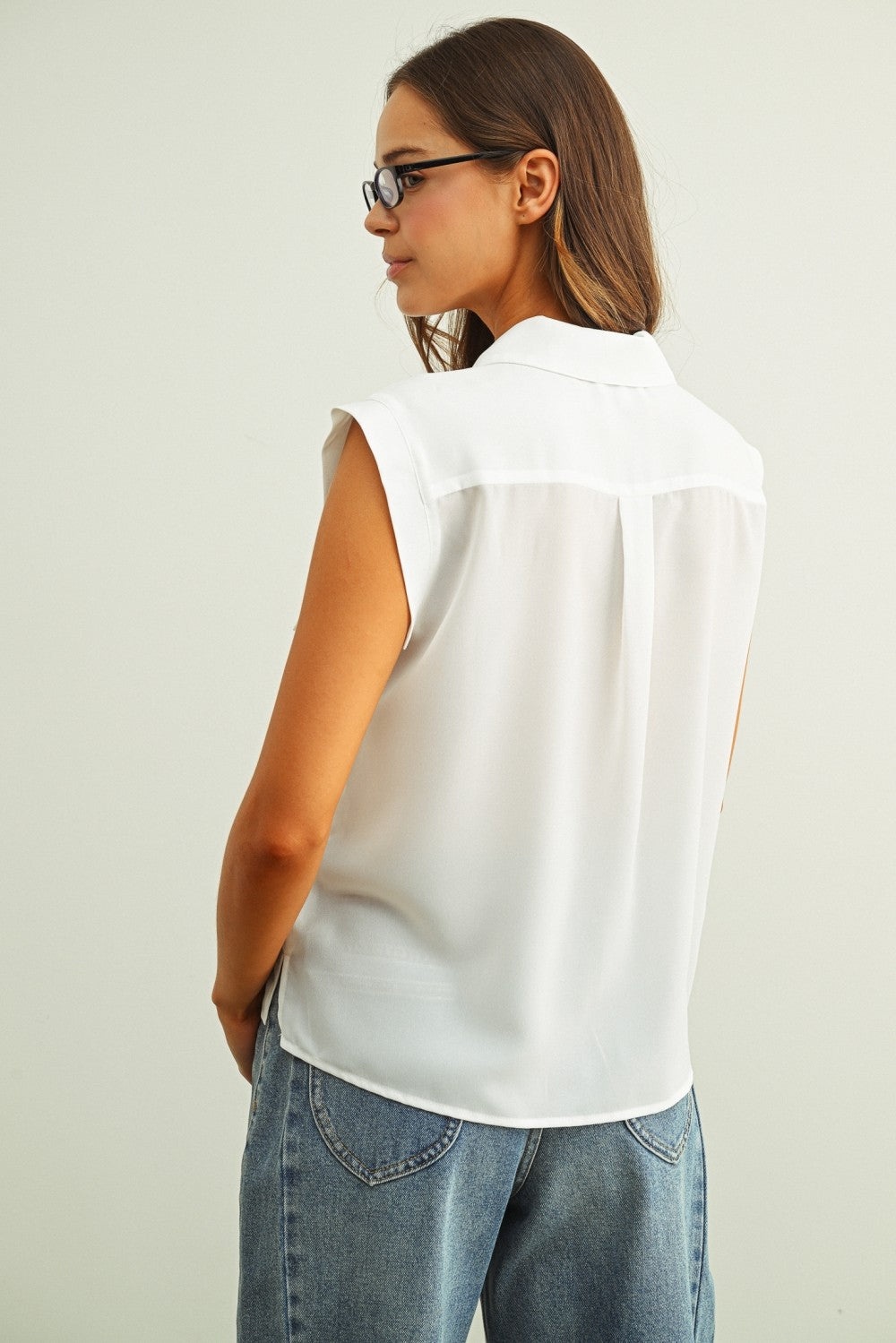 Button Front Sleeveless Chiffon Blouse