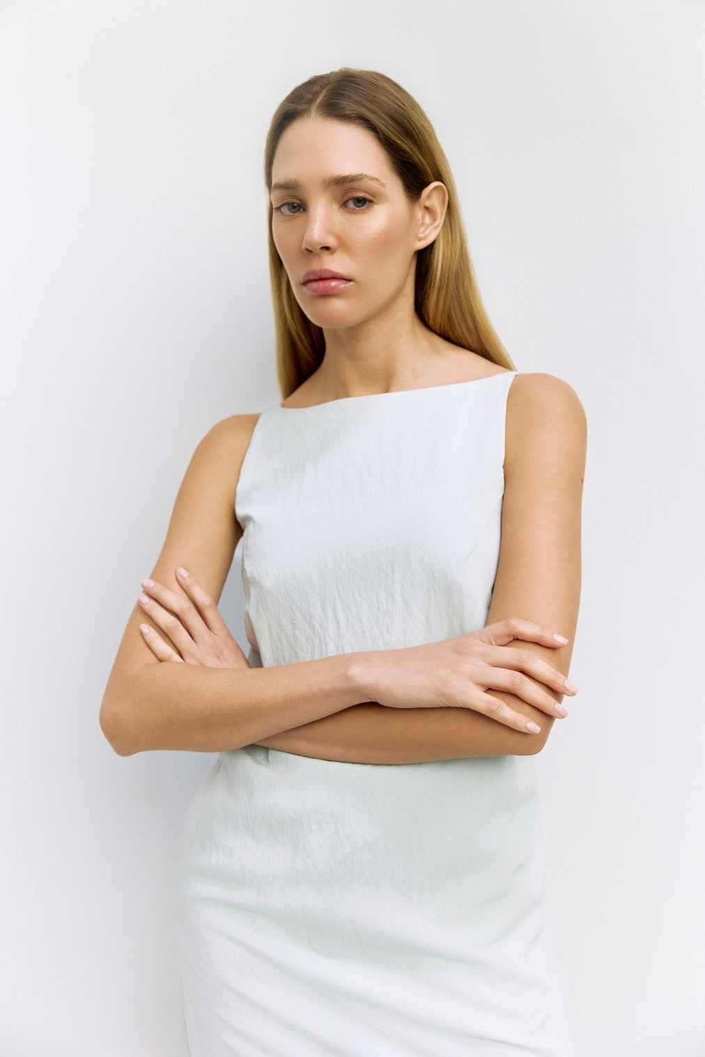 Crinkled Fabric Top W/ Shirring Detail