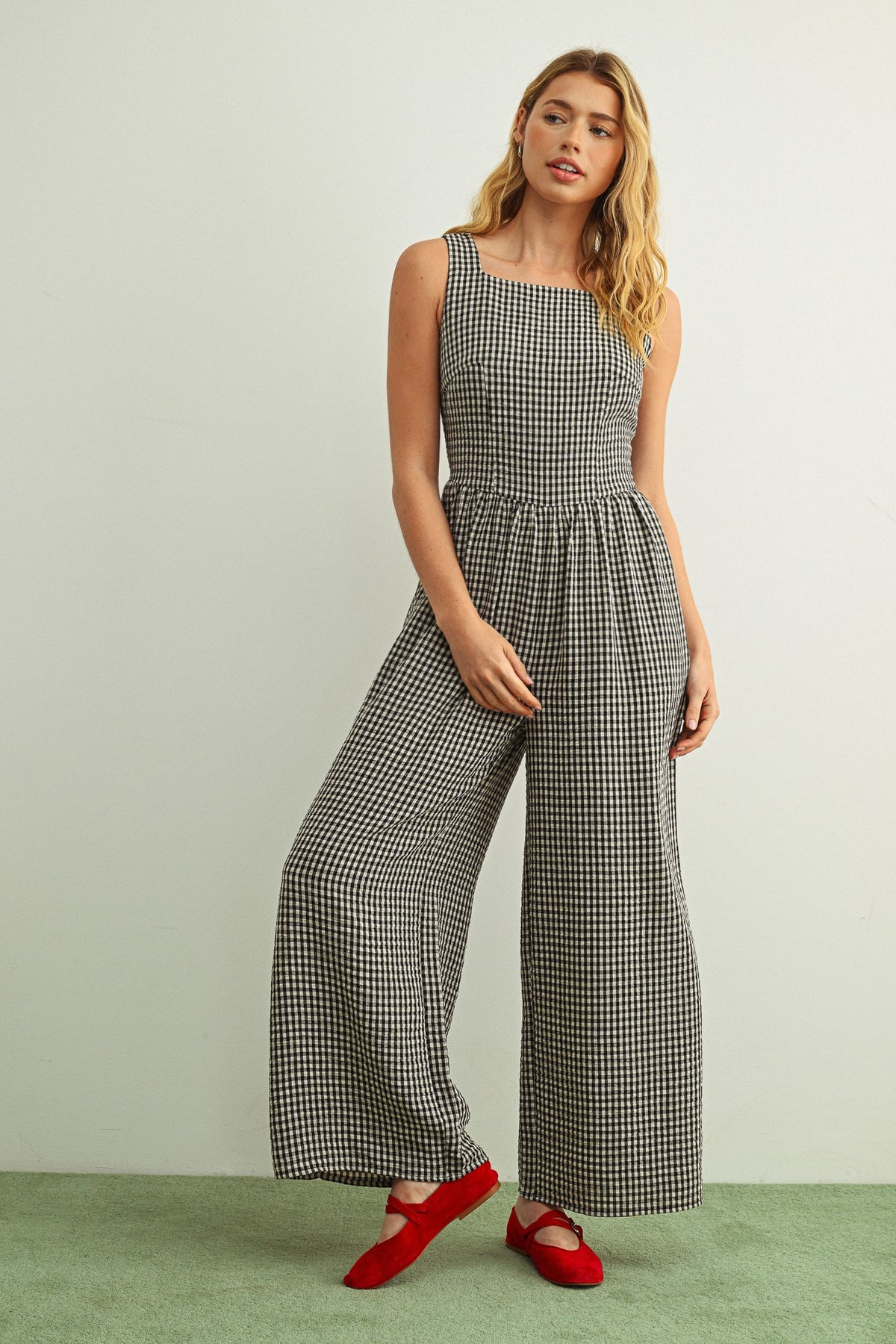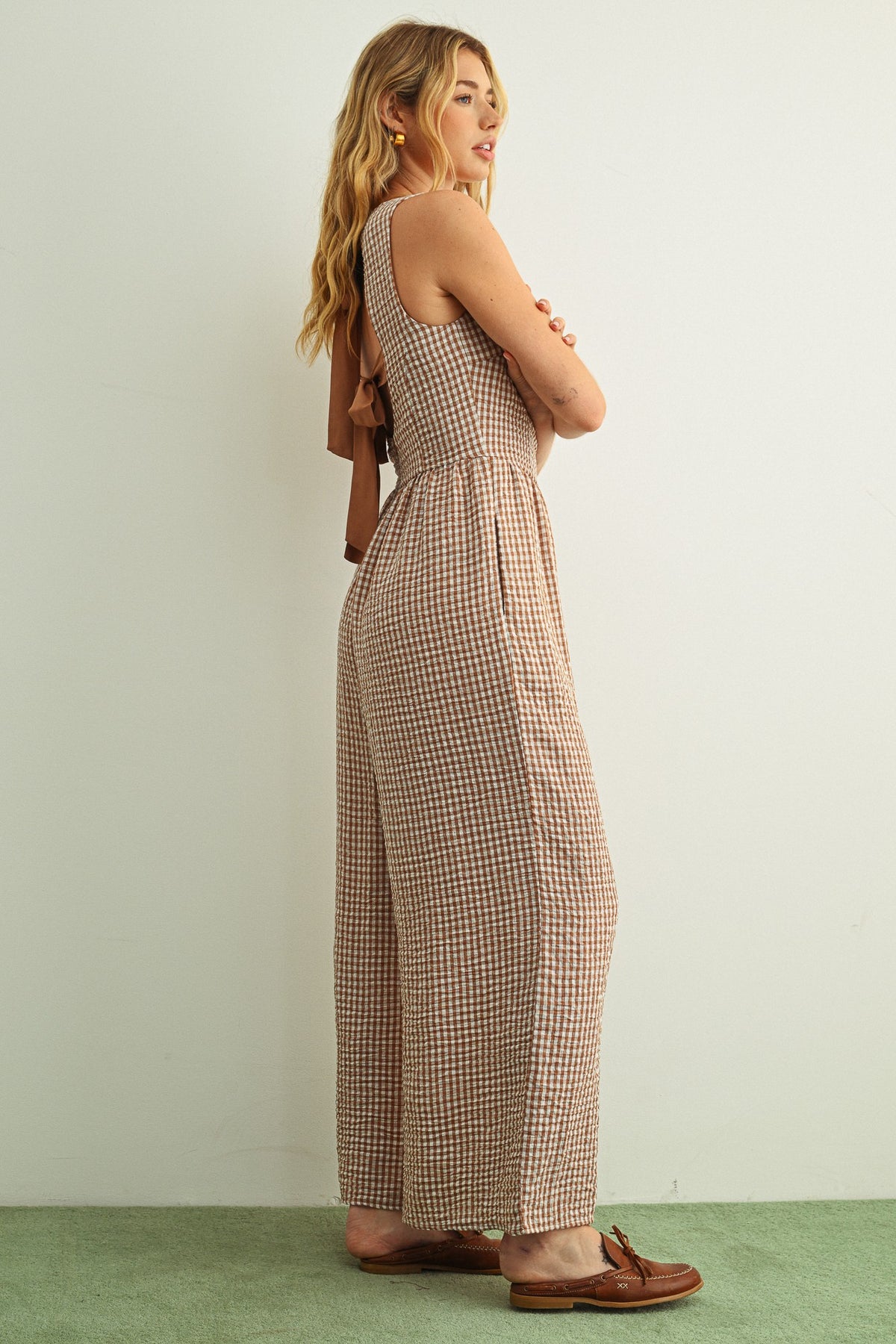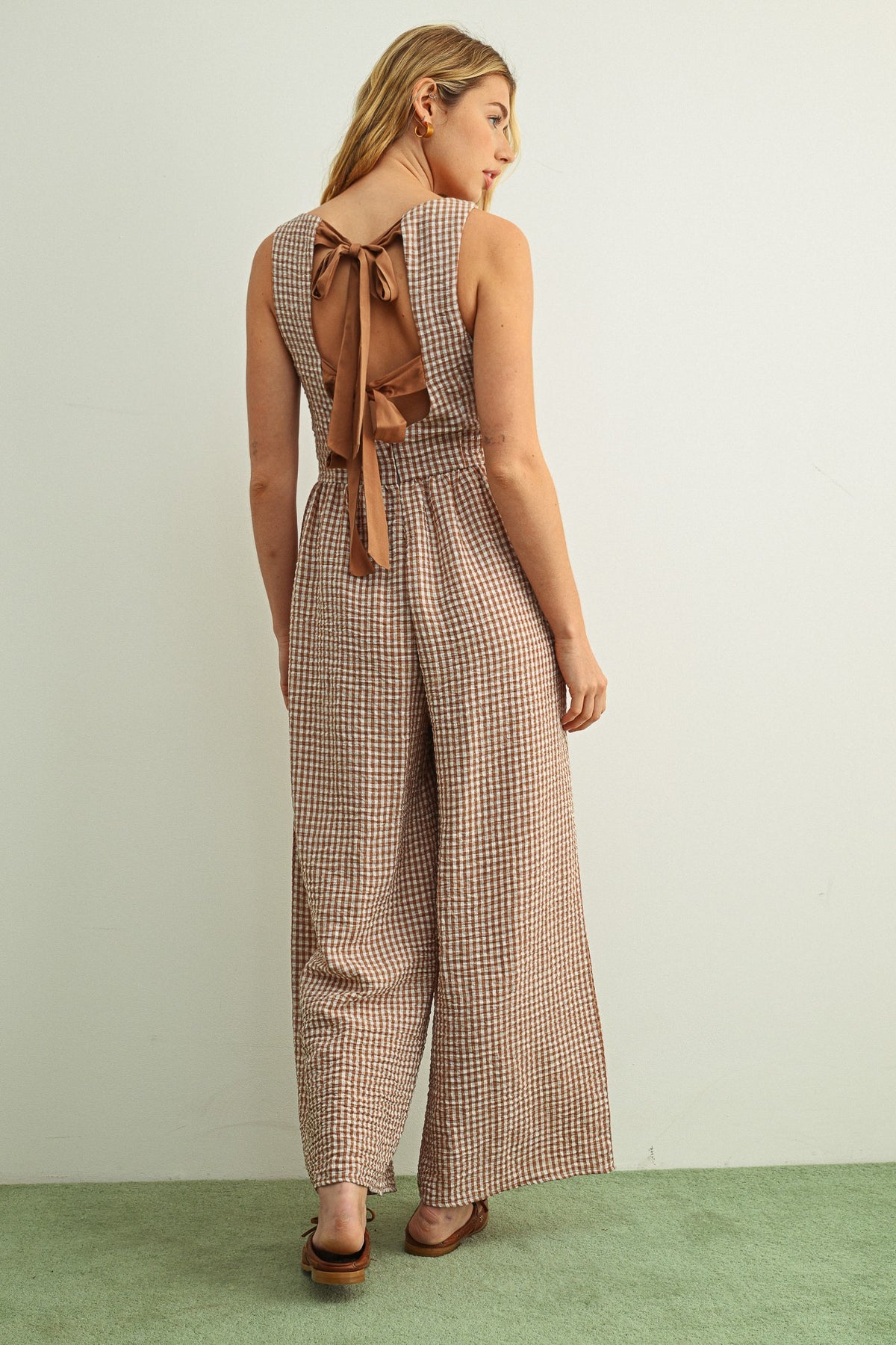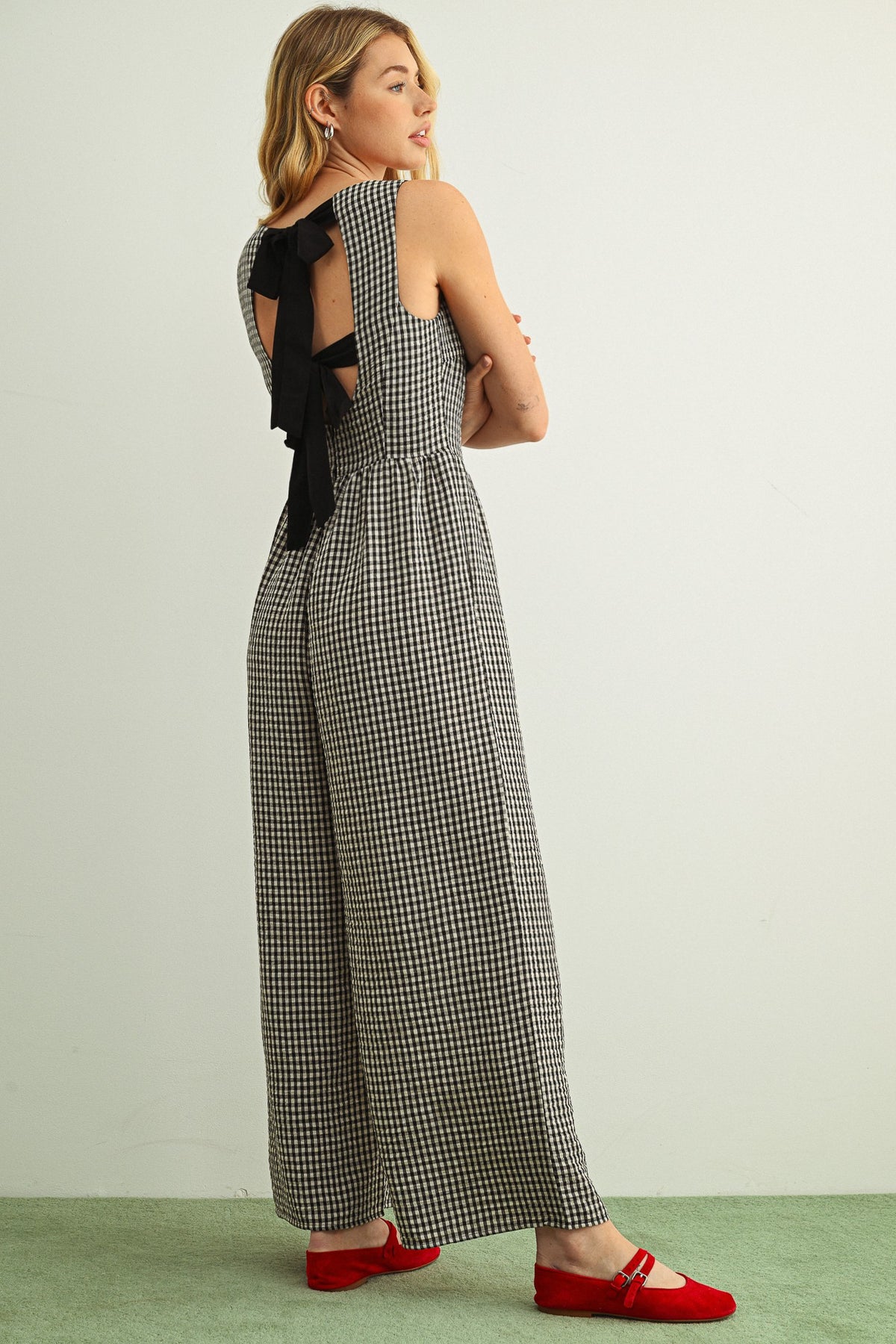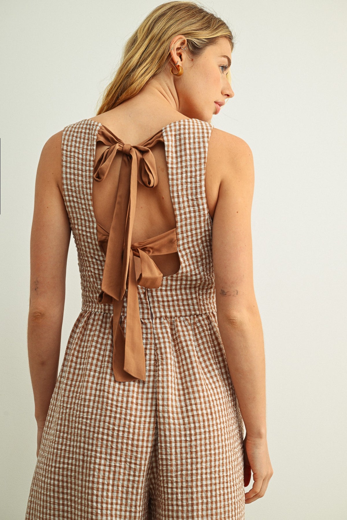 Gingham Printed Tie Back Jumpsuit