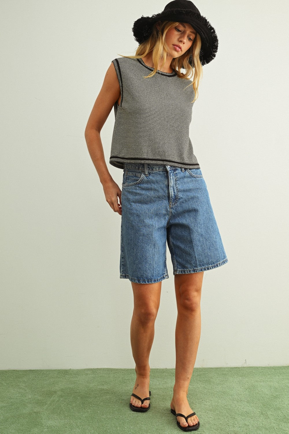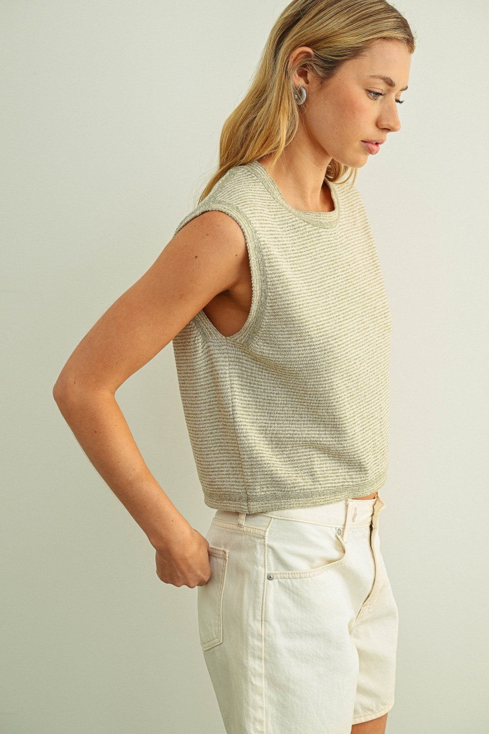 Pinstriped Sleeveless Knit Top