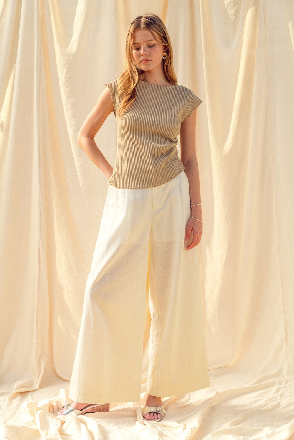 Stripe Button Up W/ Pleated Waist