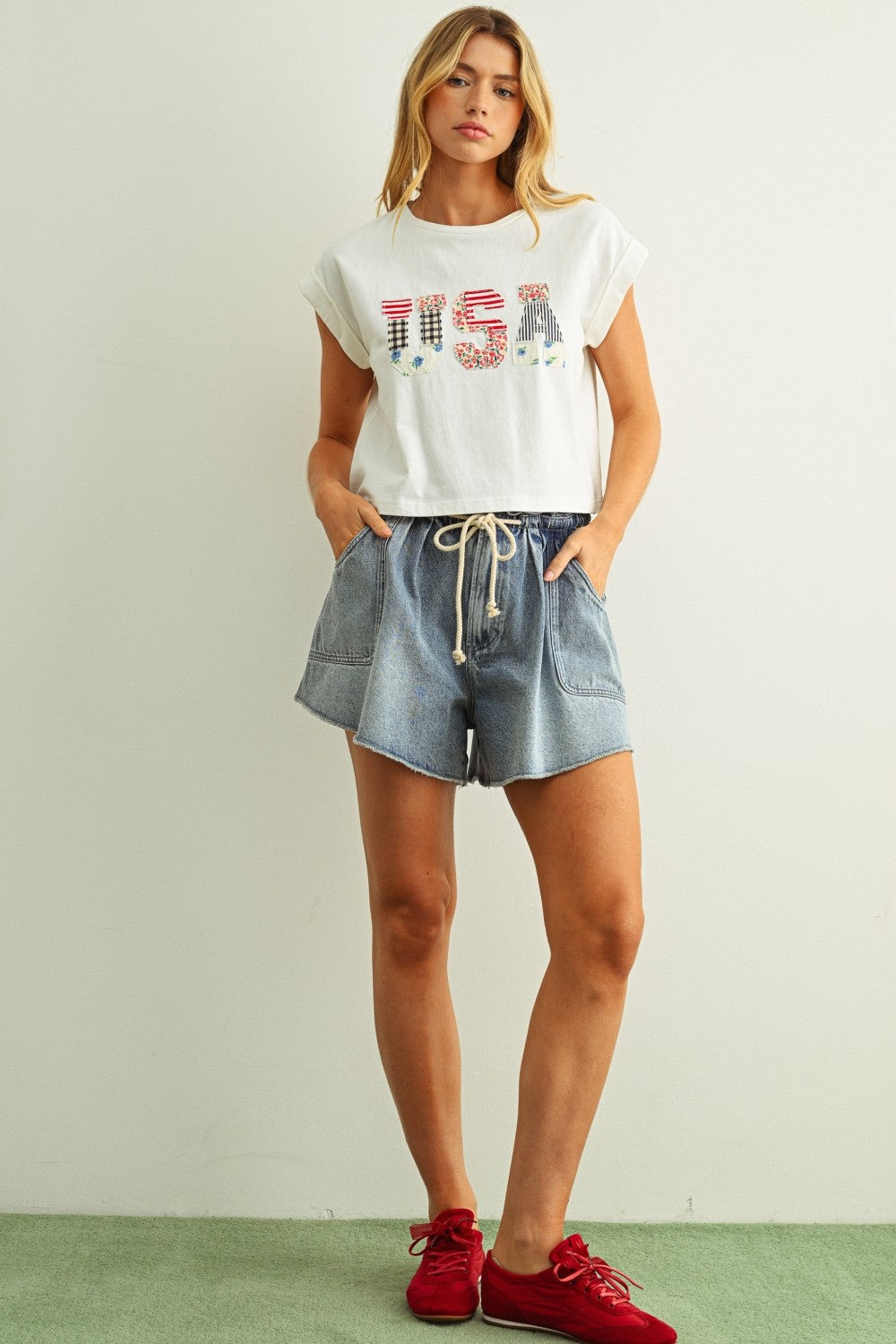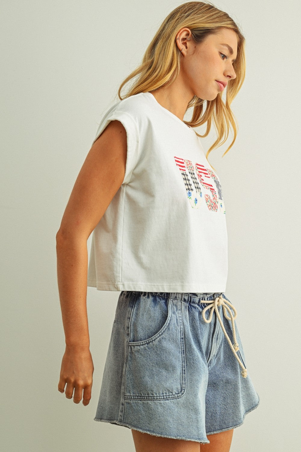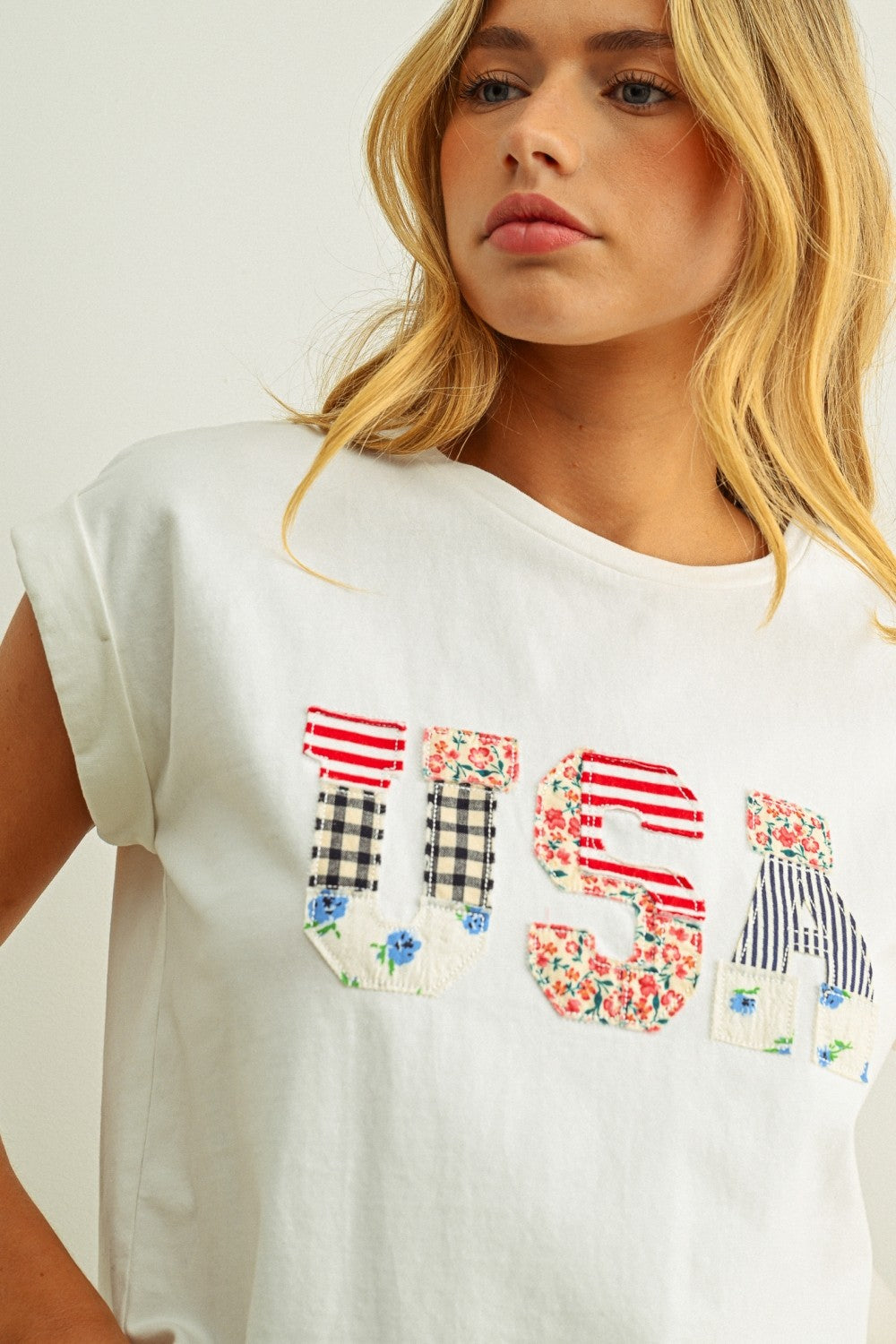 USA Floral Patchwork Front T Shirt
