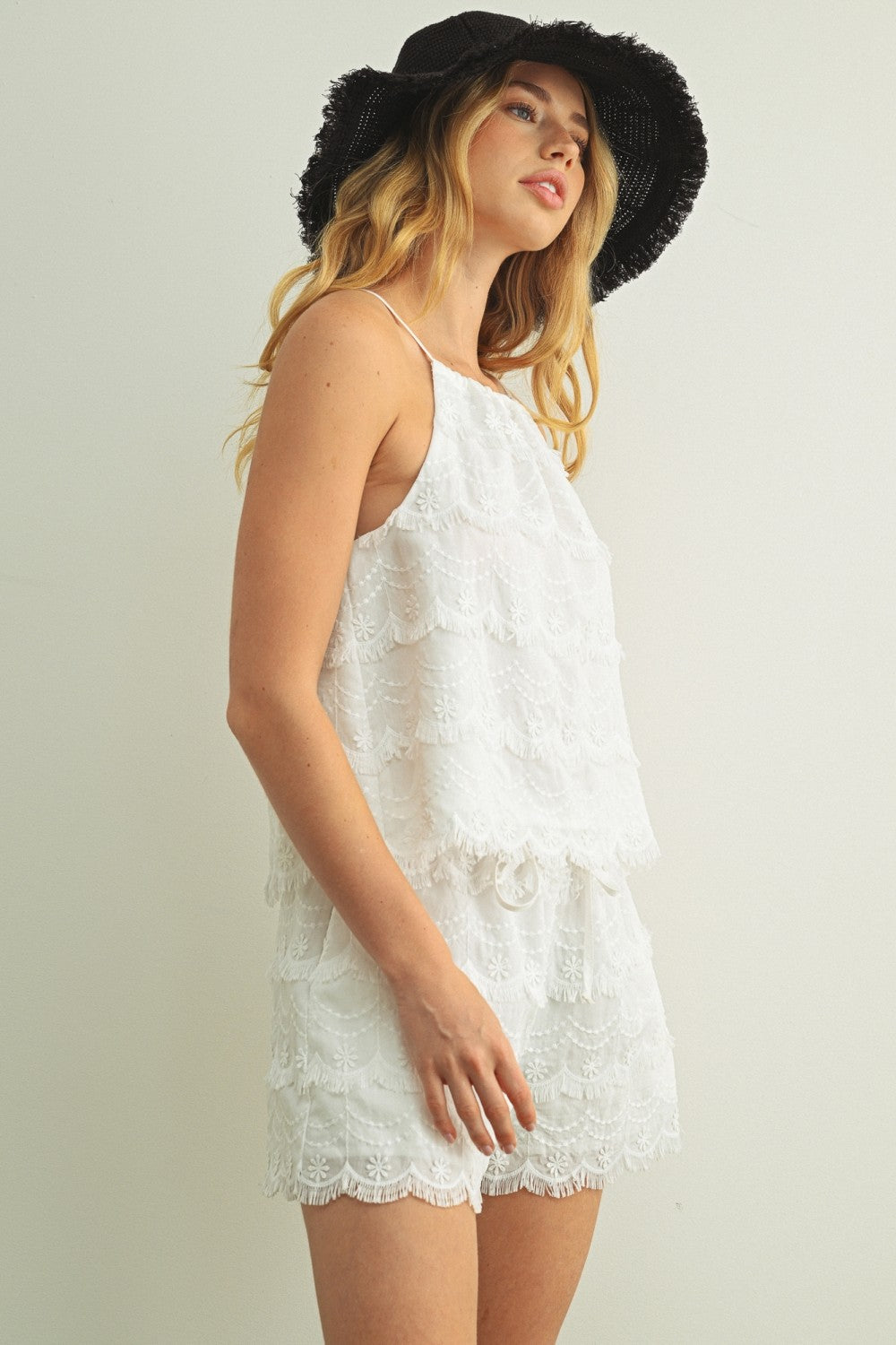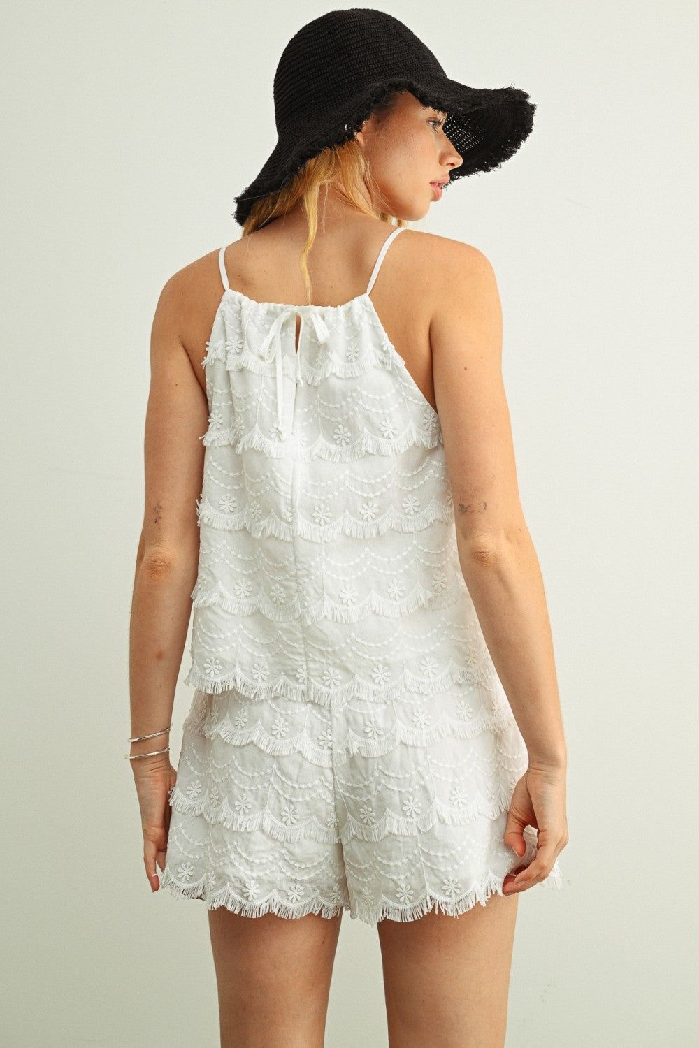 Eyelet Romper W/ Button Detail