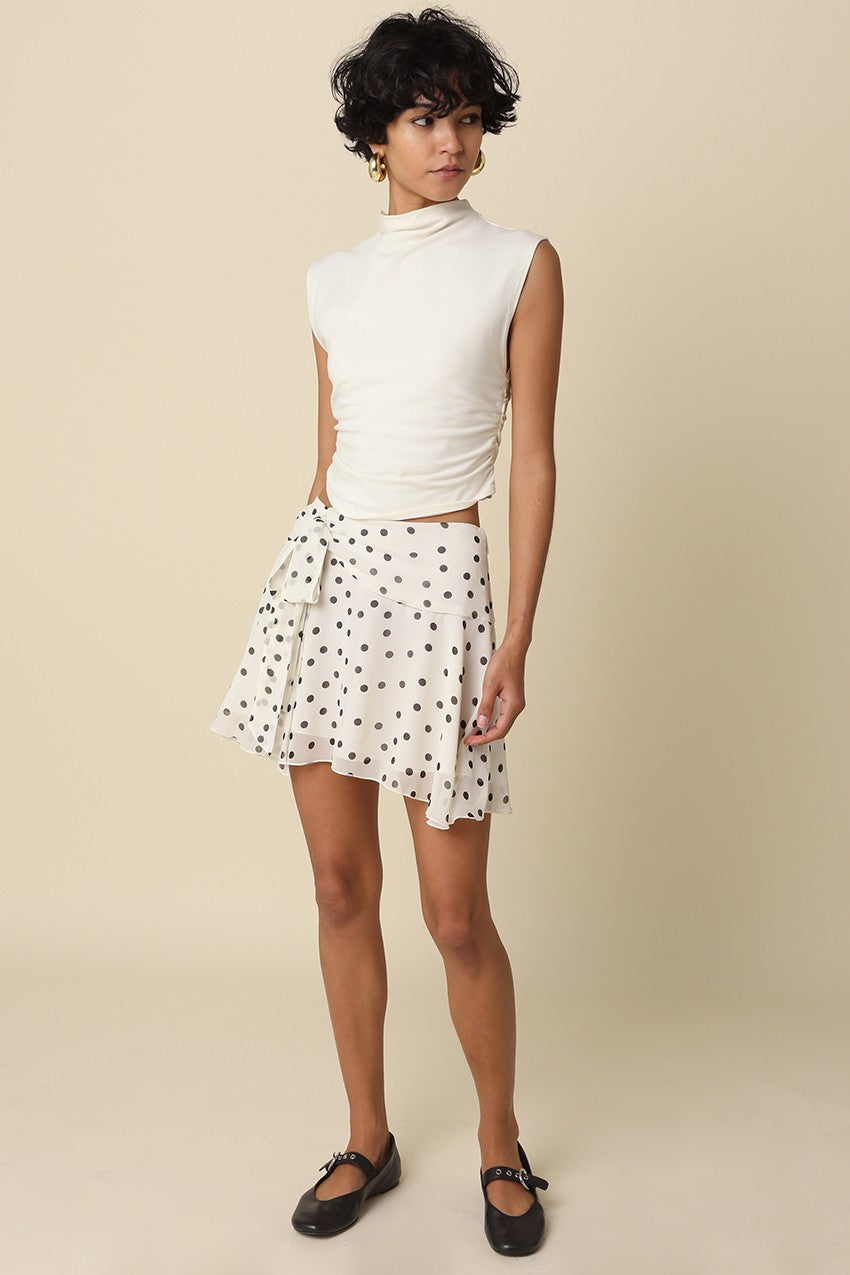 Polka Dot Tie Front Mini Skirt