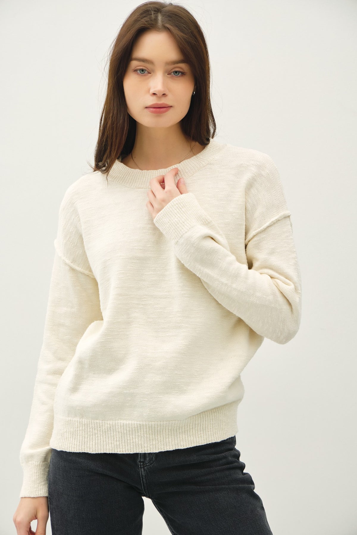 Relaxed Fit Cotton Slub Sweater