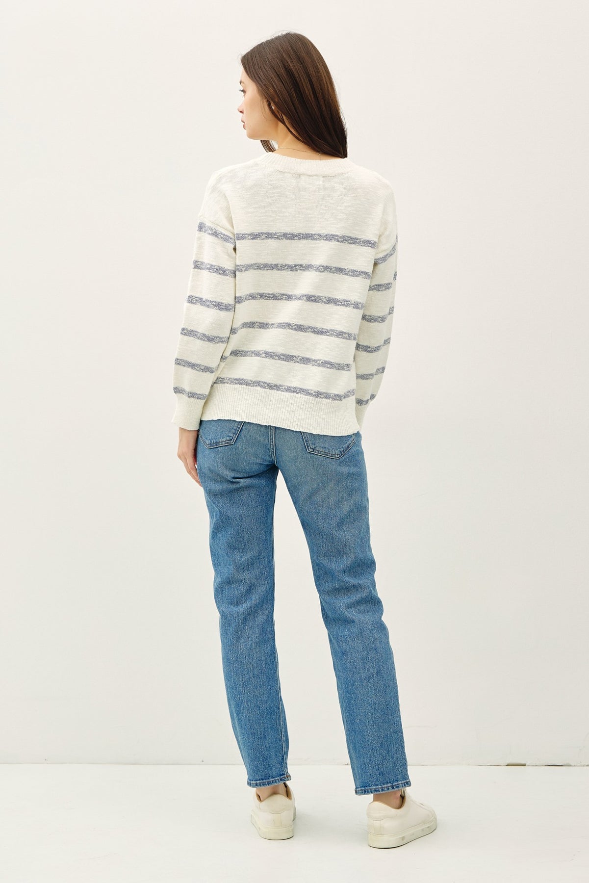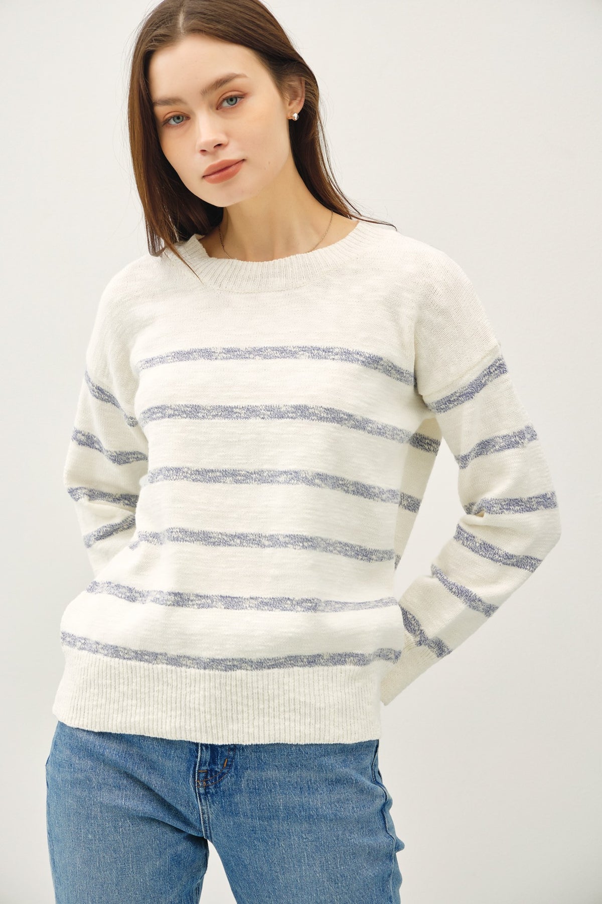 Drop Shoulder Heathered Stripe Sweater