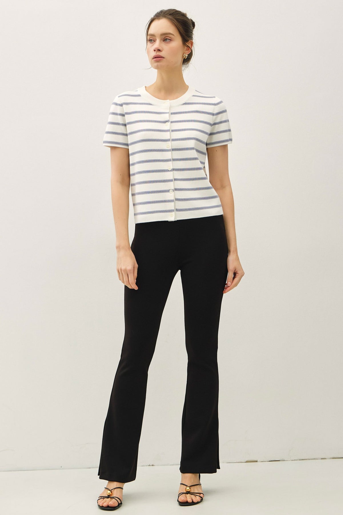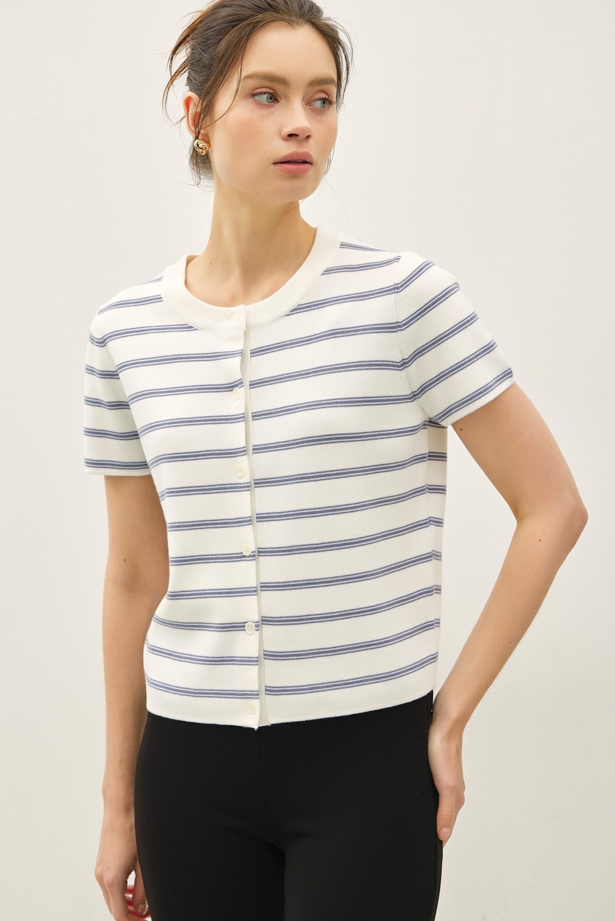 Striped Short Sleeve Cardigan