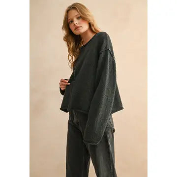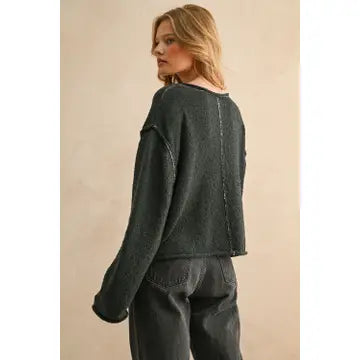 Wide Neck Long Sleeve Sweater Top