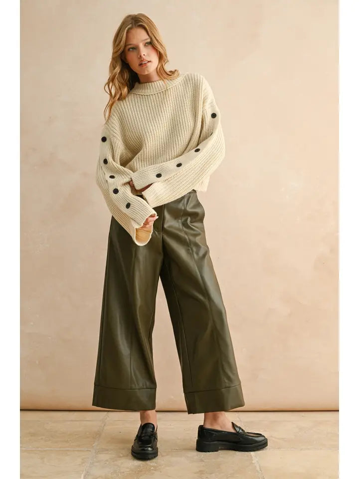 Contrast Trim Mock Neck Sweater