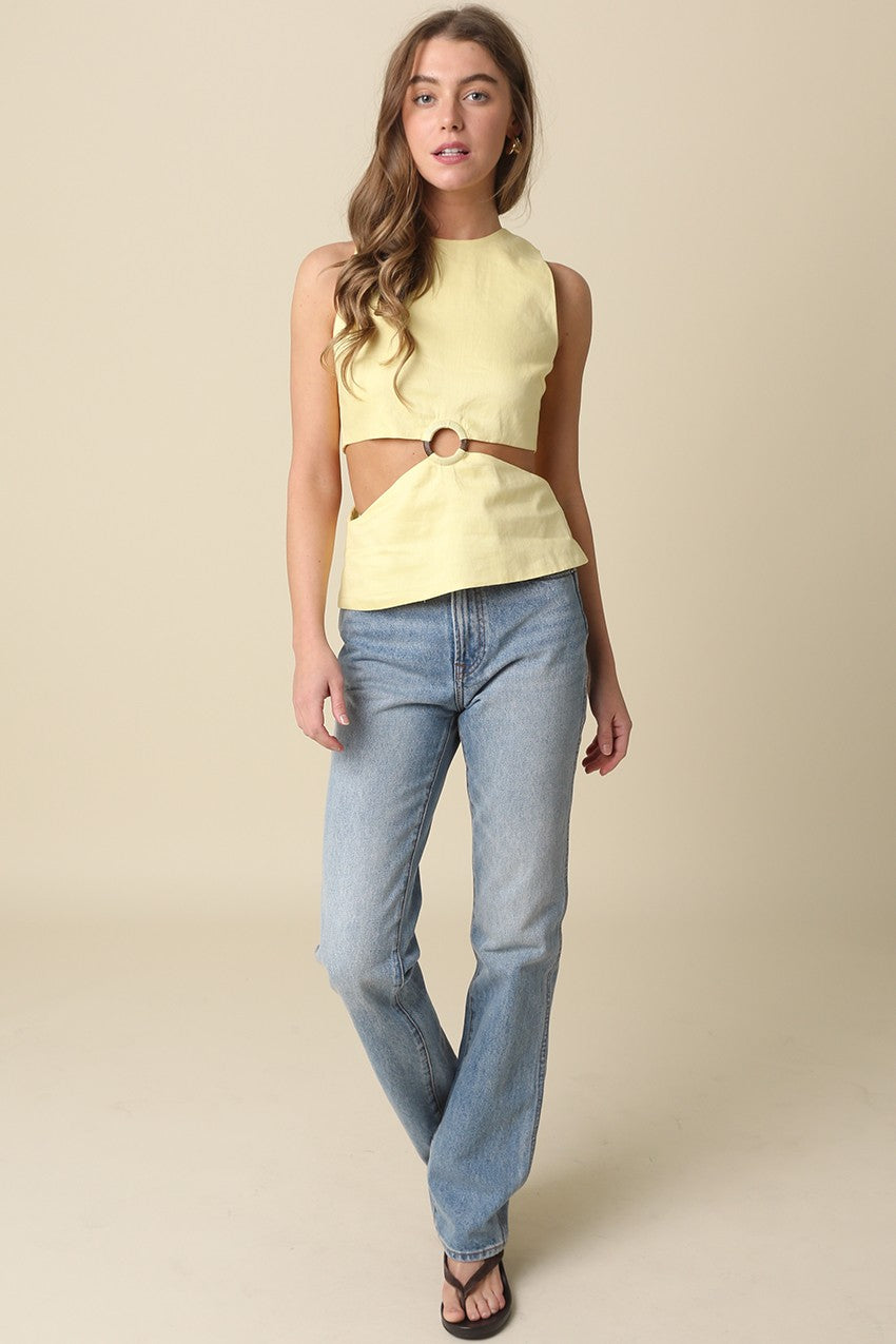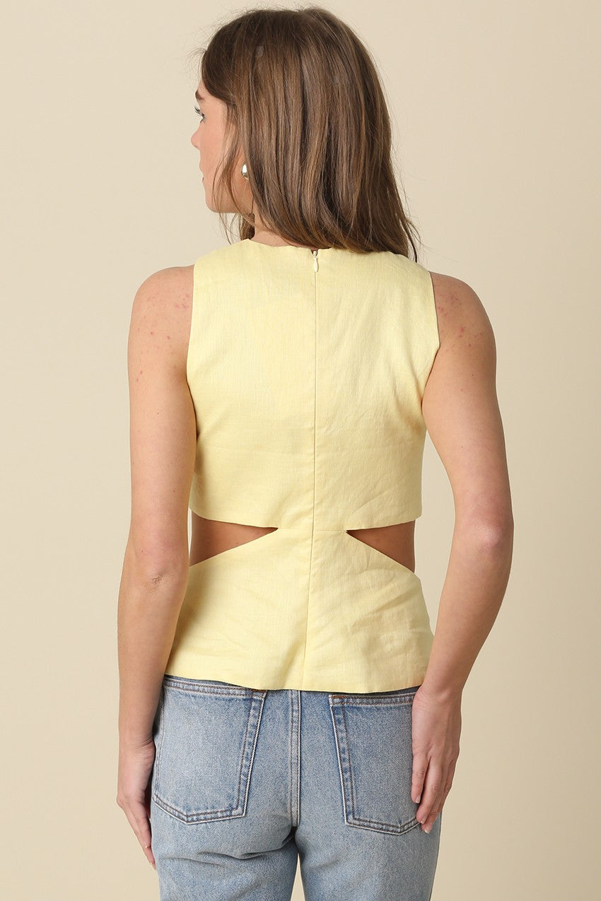 Sleeveless Cutout Linen Top