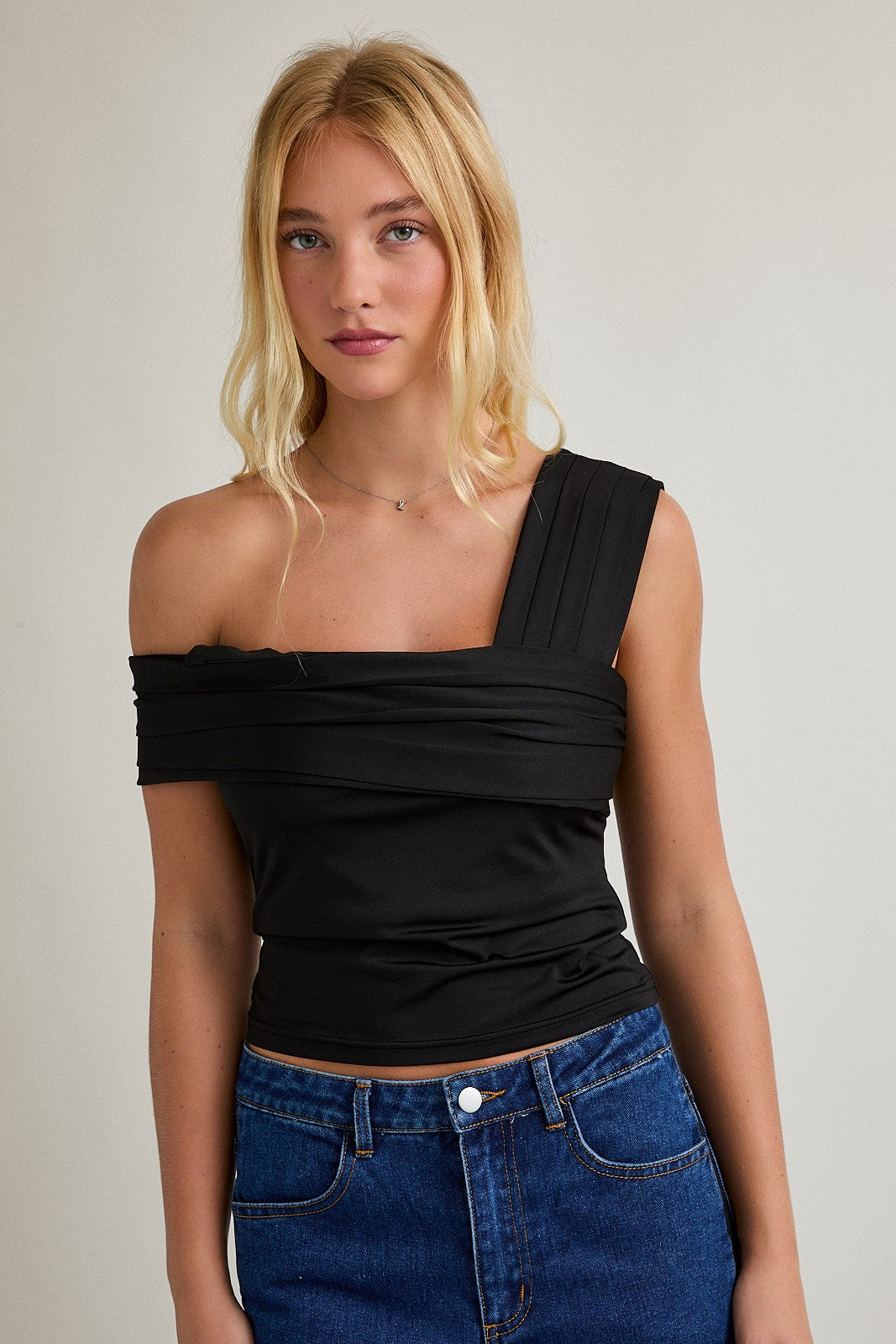 Sleeveless Pleated Detail Top