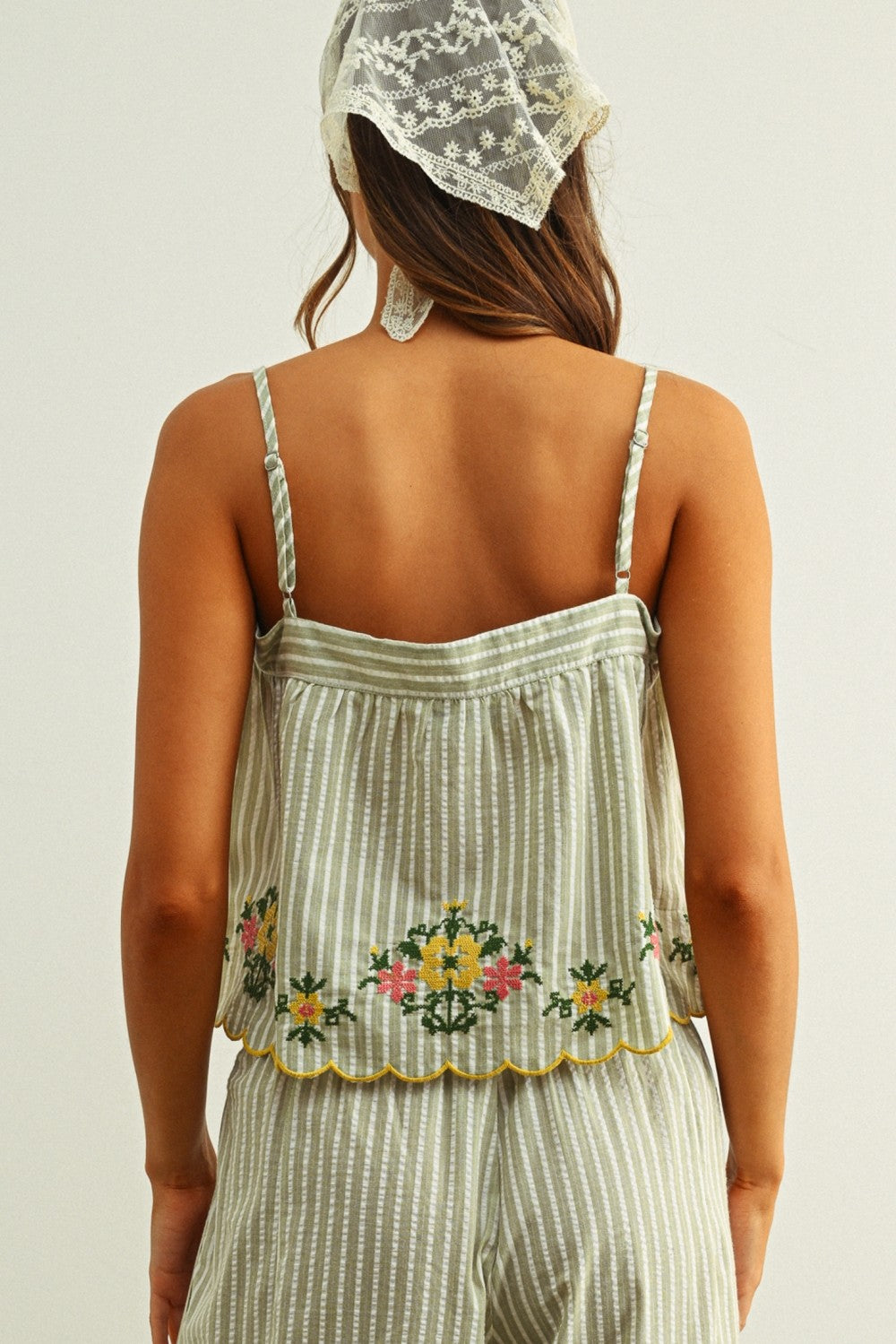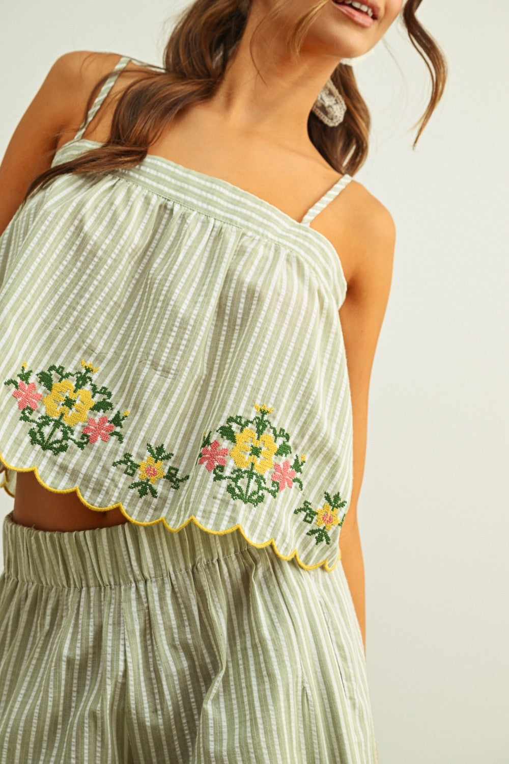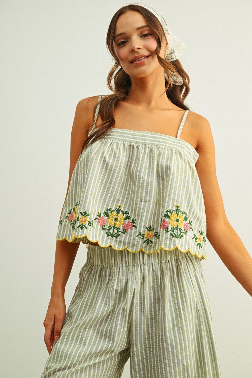 Floral Embroidery With Striped Top