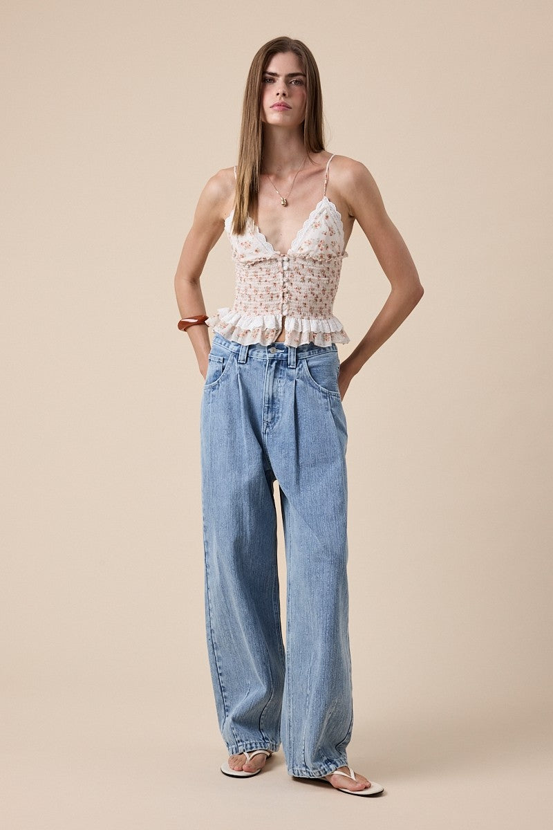 Floral Sweetheart Ruffle Lace Cami Top