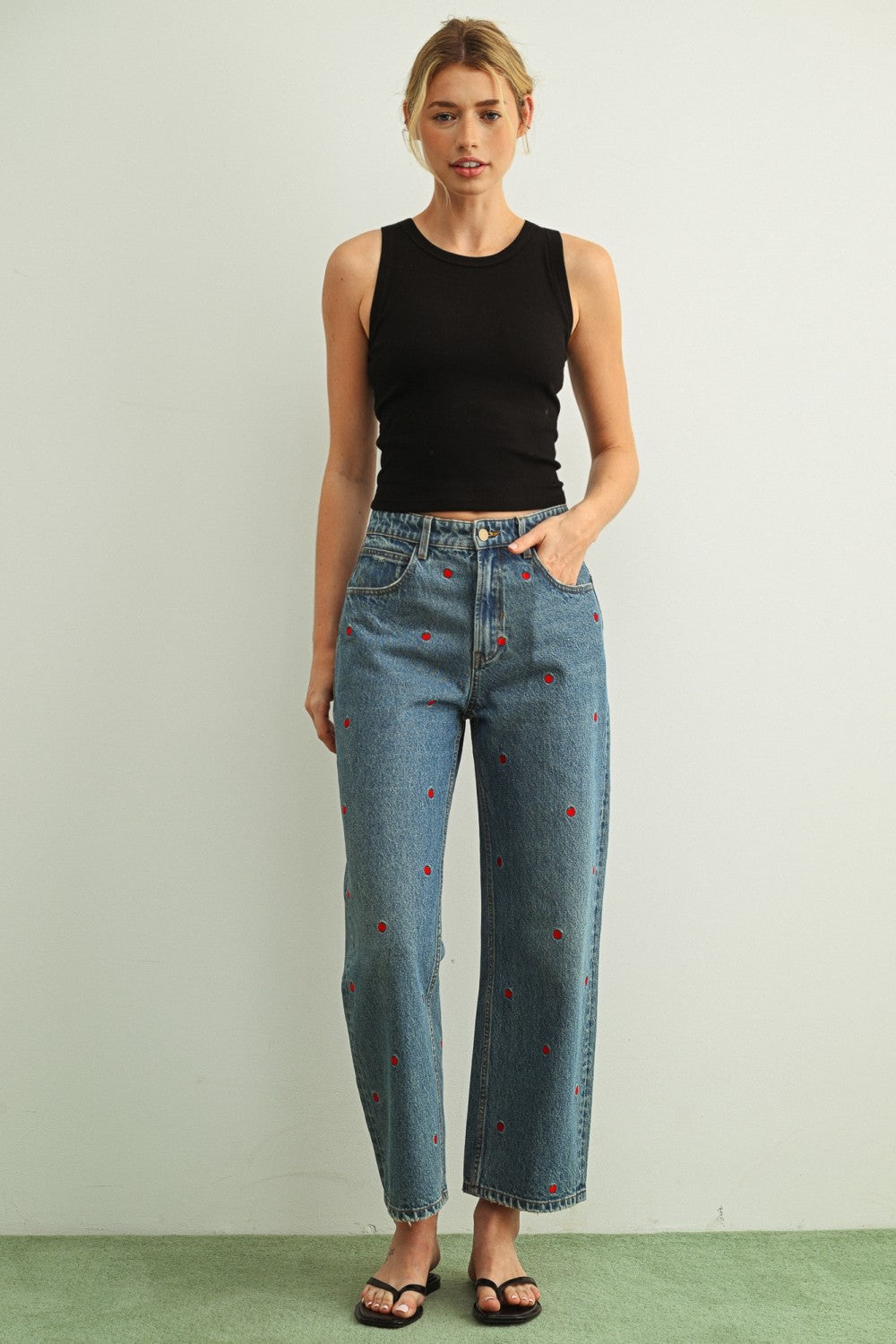 Round Neck Button Detail Top