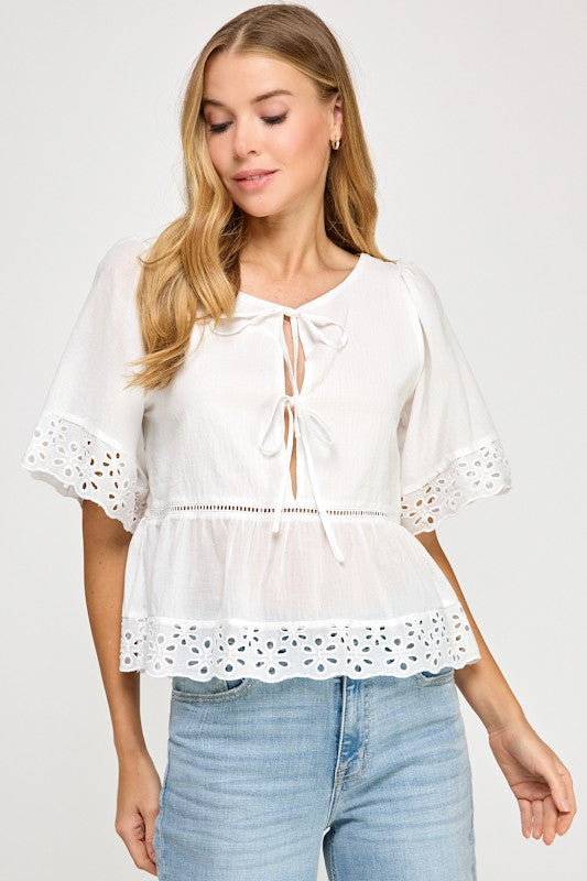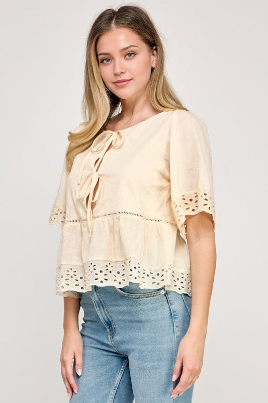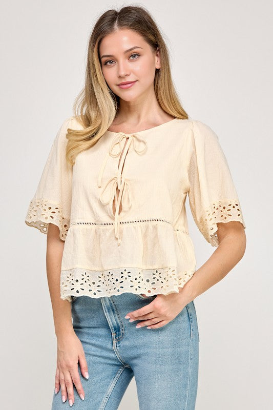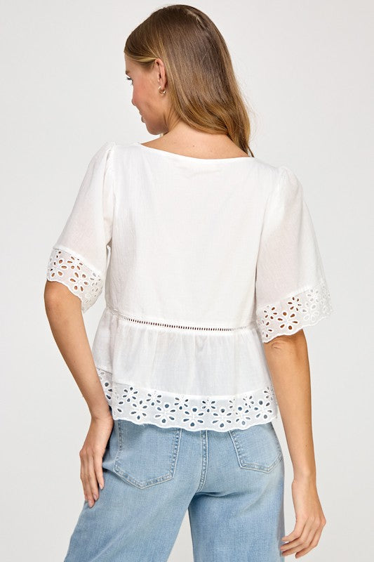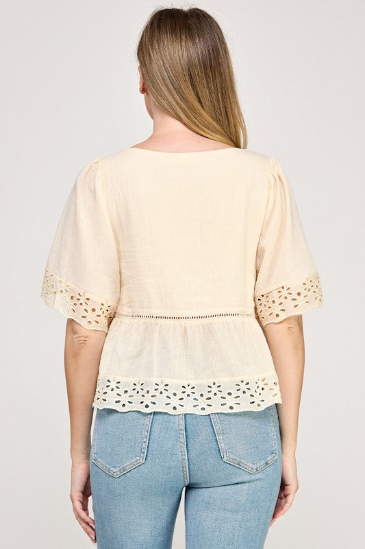 Eyelet Half Sleeve Blouse