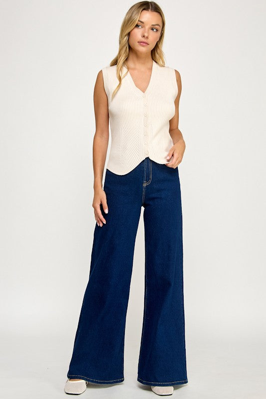 Sleeveless Button Down Sweater Vest