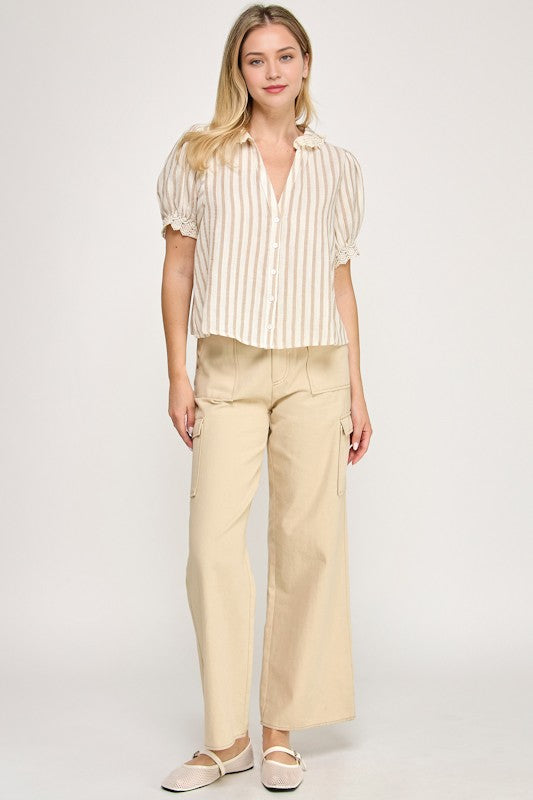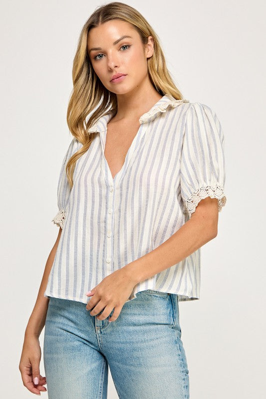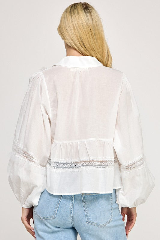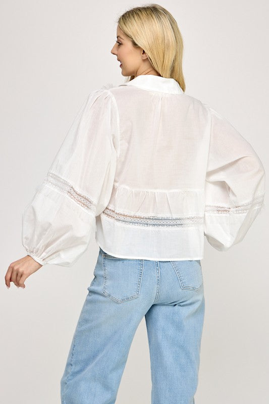 Lace Detail Button Up Blouse