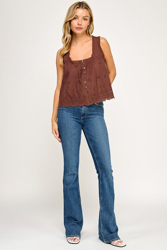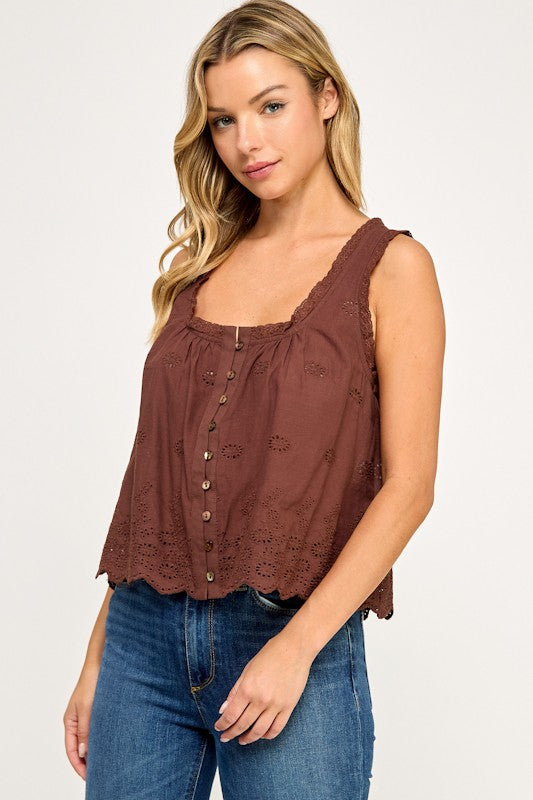 Eyelet Lace Babydoll Tank