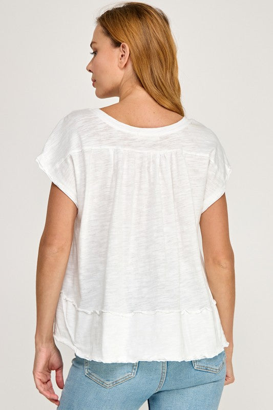 Smocked Detailed V Neck Swing Top