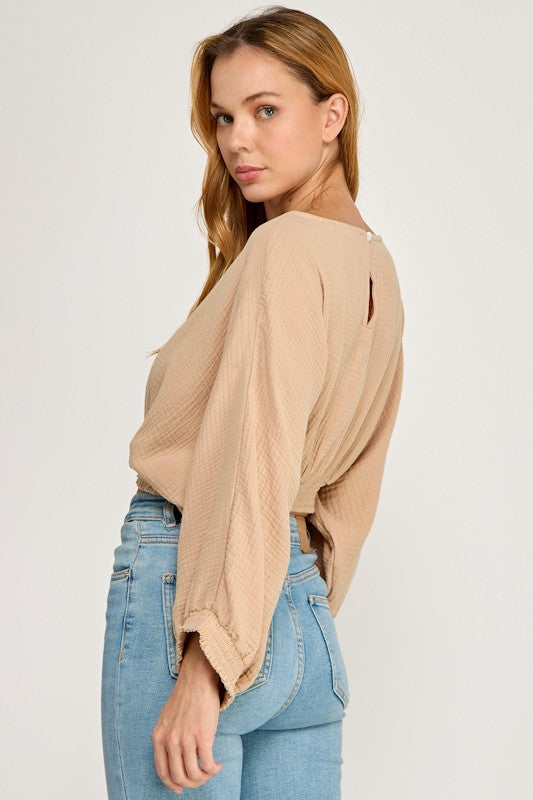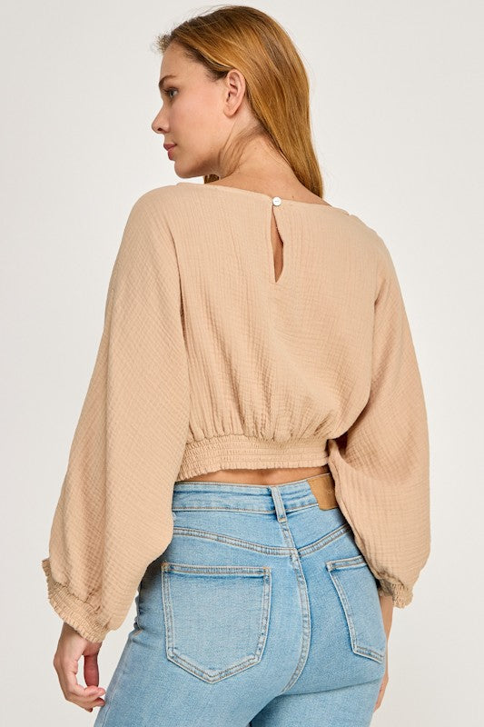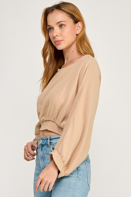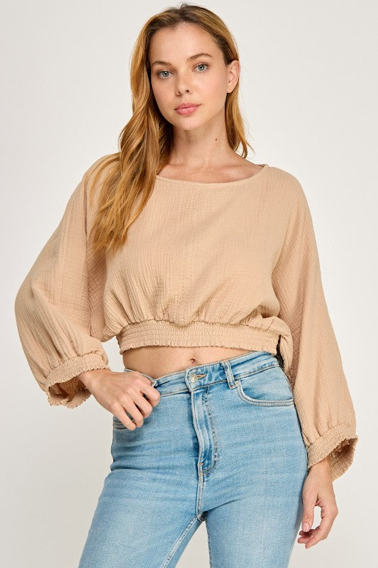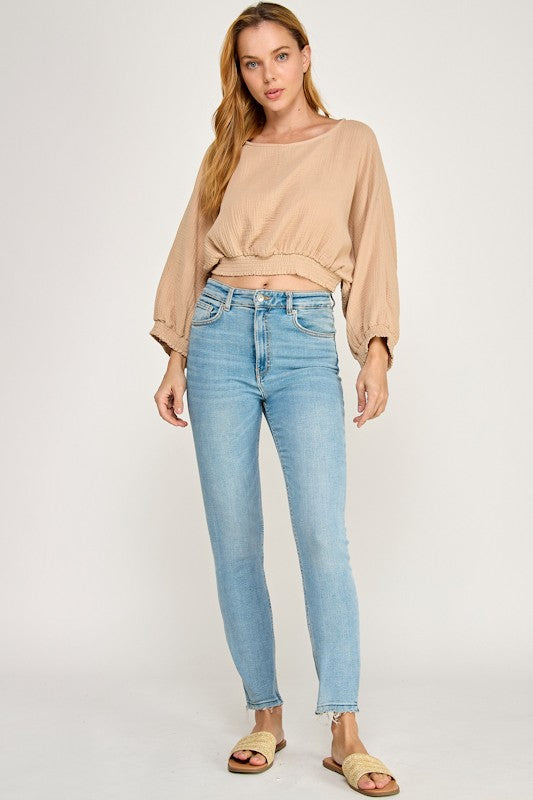 Smocked Waist Dolman Top