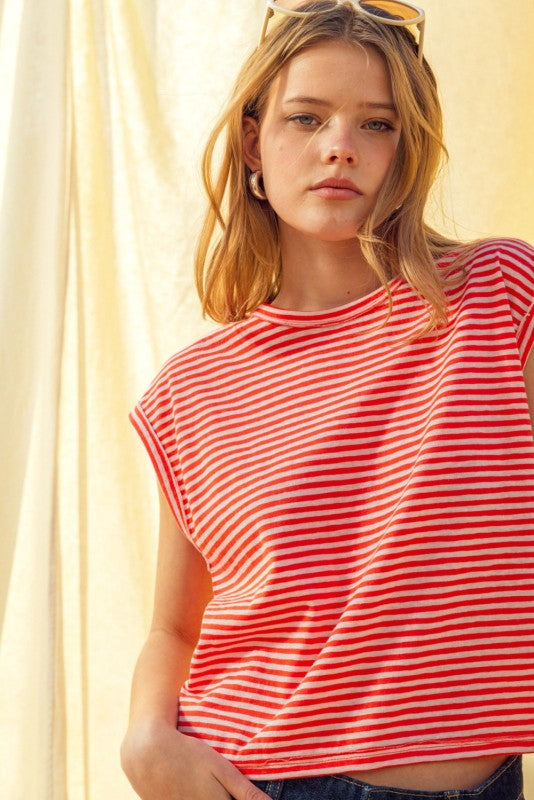 Stripe Pattern Slub Top