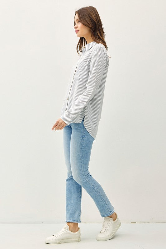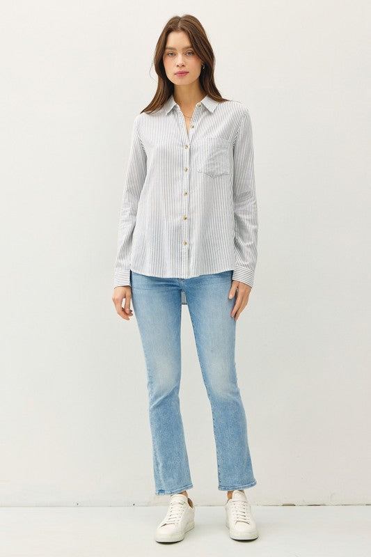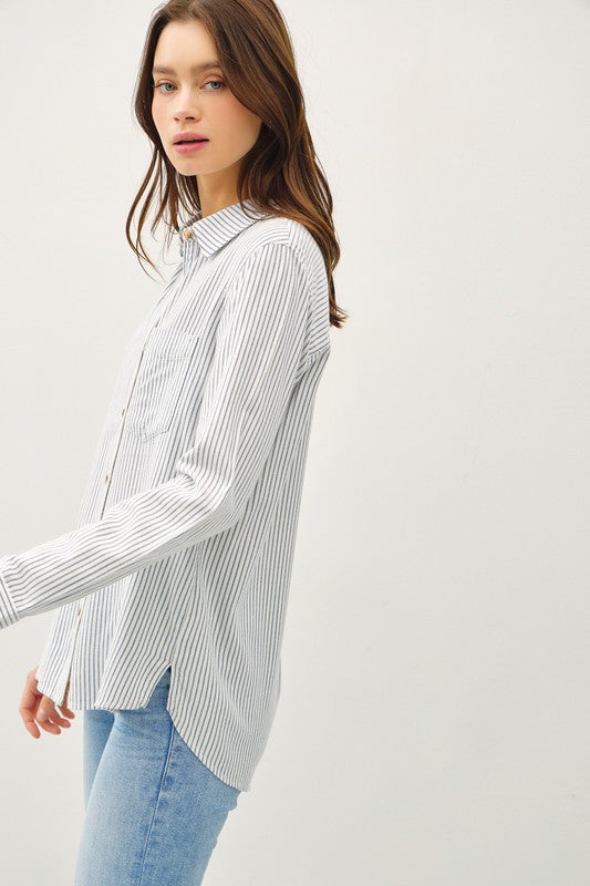 Pinstripe Long Slv Button Up