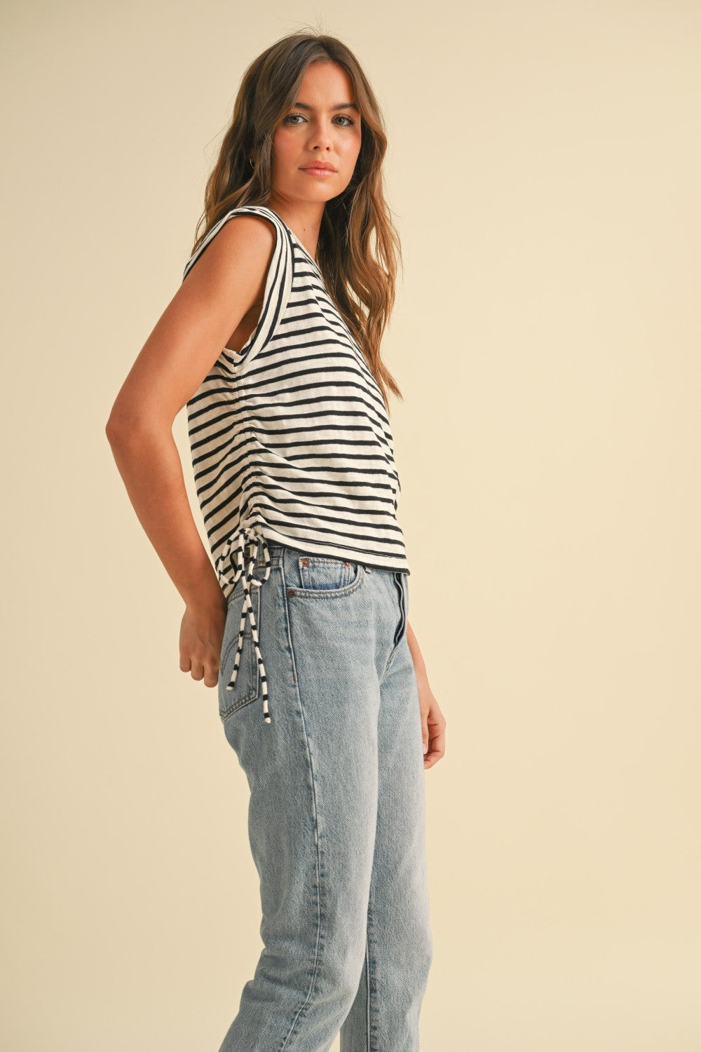 Striped Side Drawstring Top