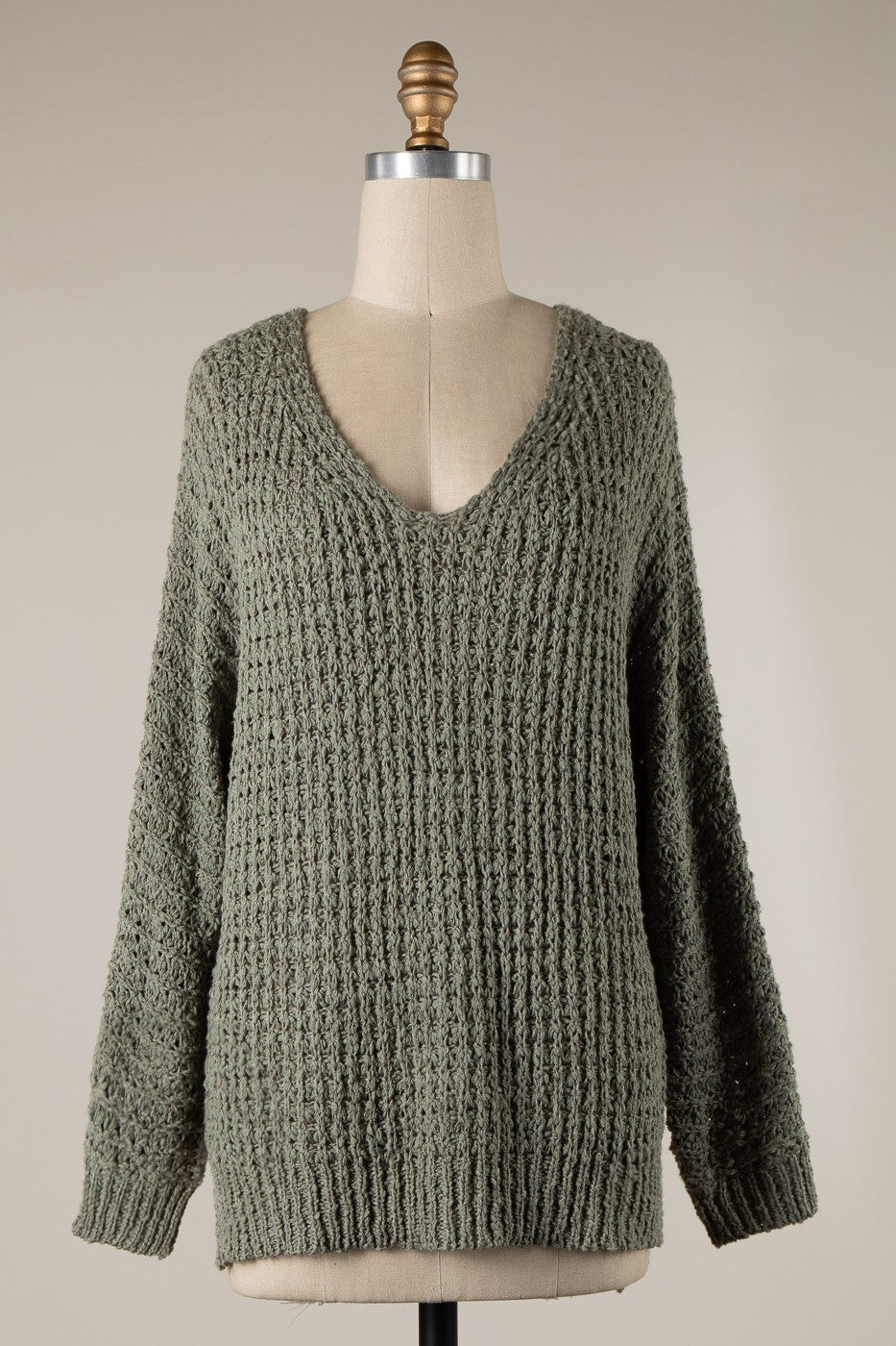 Vneck Open Knit Sweater